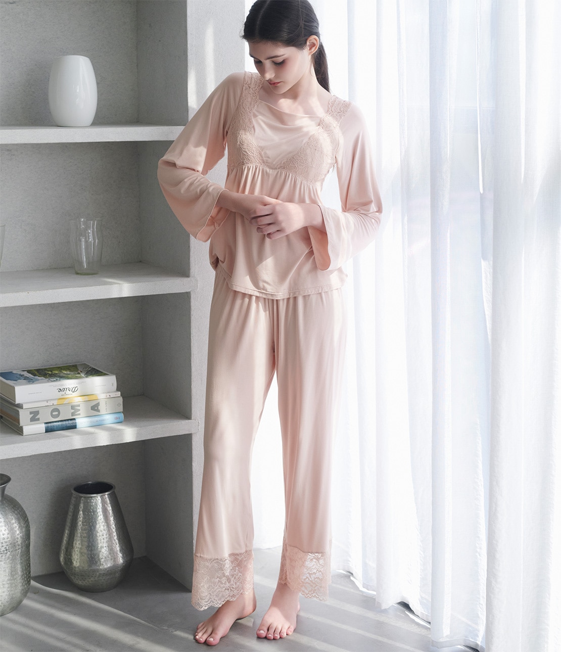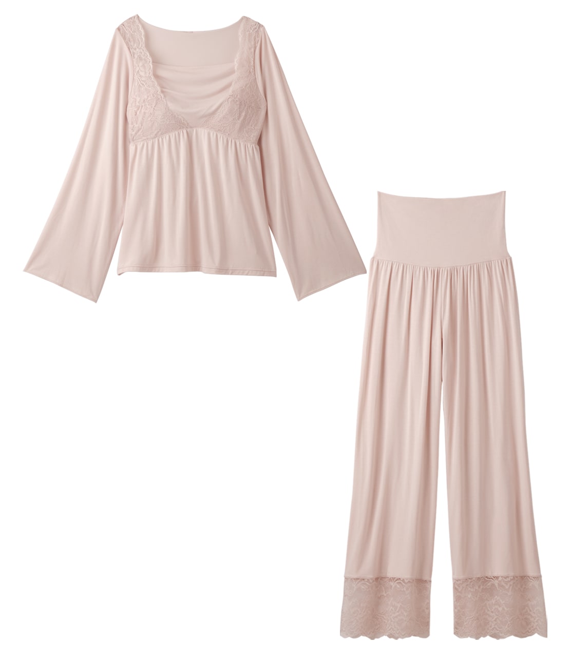 ・やさしくバストを安定させる、ナイトブラと一体化したルームウェア。