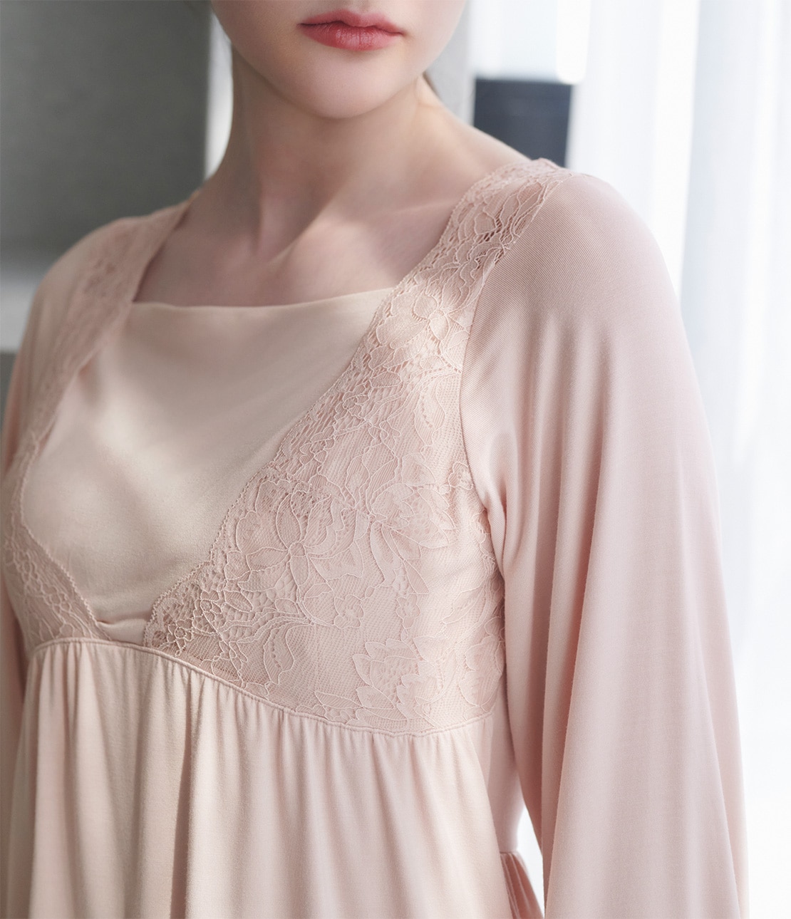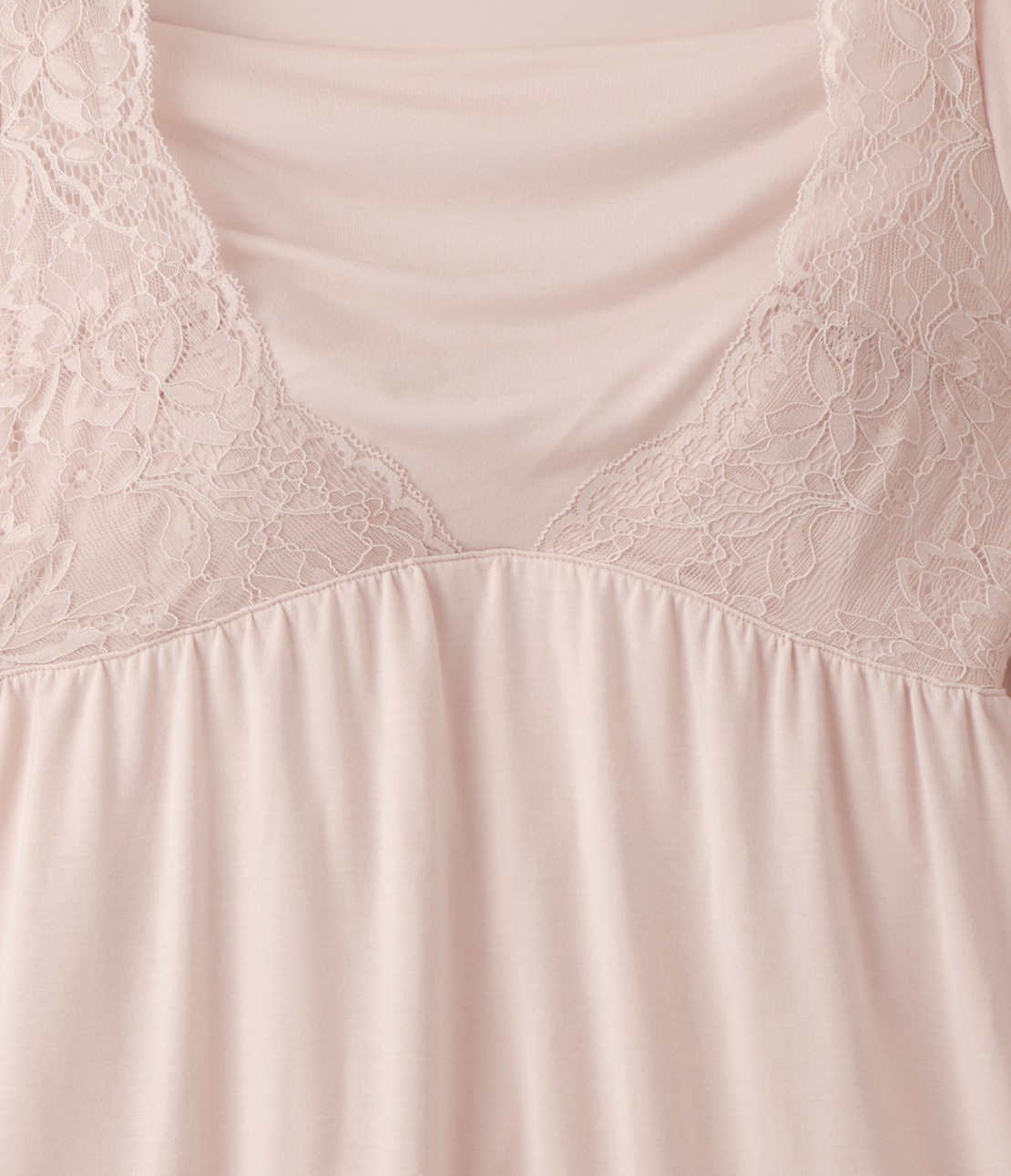 ・肌ざわりの良いジャージー生地に、レースをあしらった上品なデザイン。