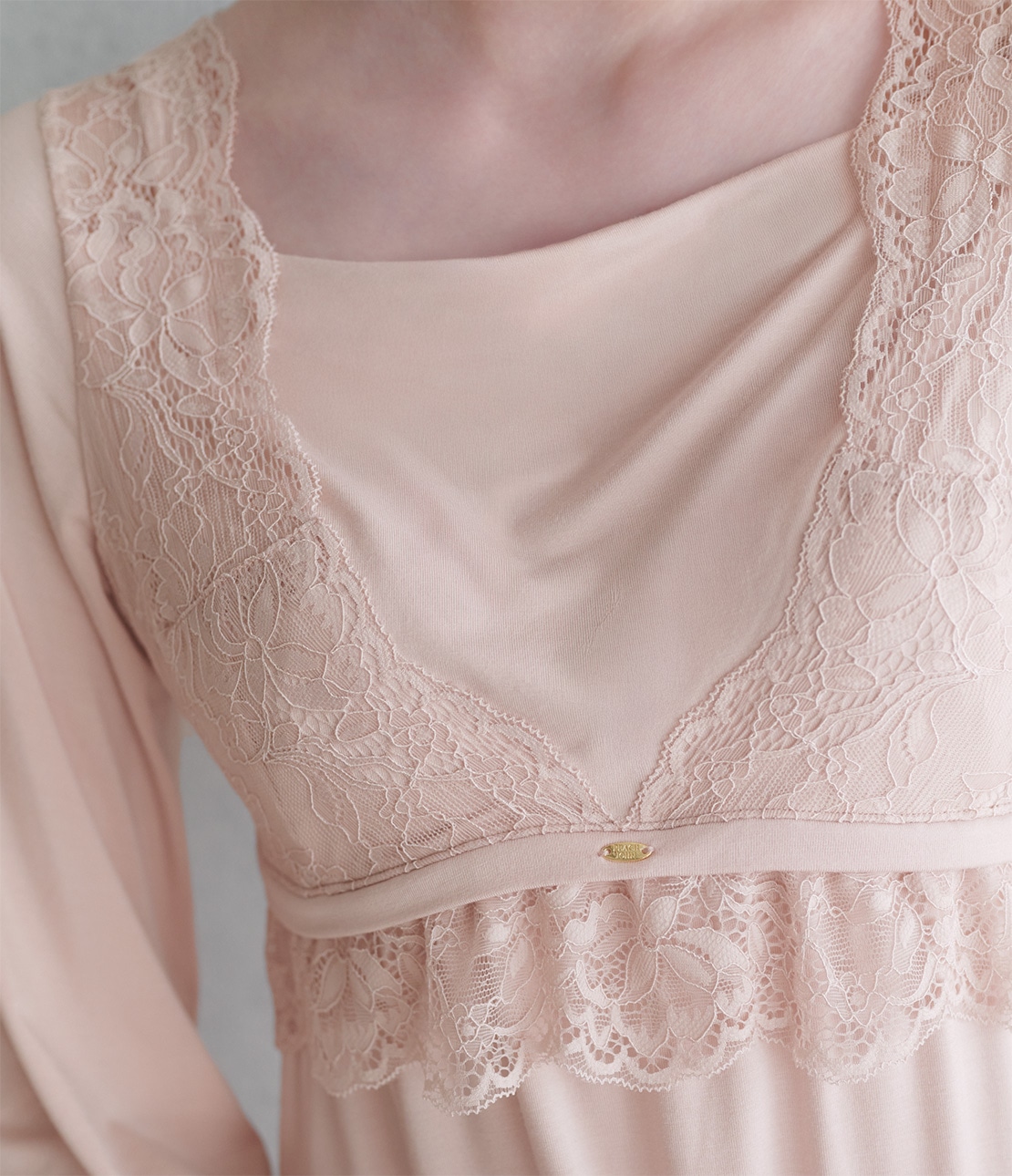 ・肌ざわりの良いジャージー生地に、レースをあしらった上品なデザイン。