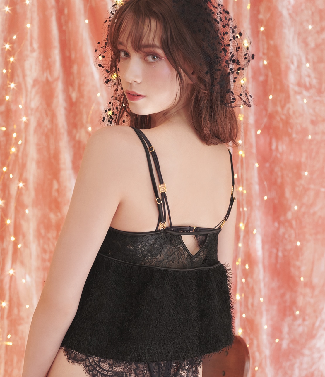 ・ふわふわと毛足の長いシャギーとアイラッシュレースの新鮮な組み合わせ。ホリデイシーズンにもぴったりな、大人可愛いランジェリーシリーズ。
