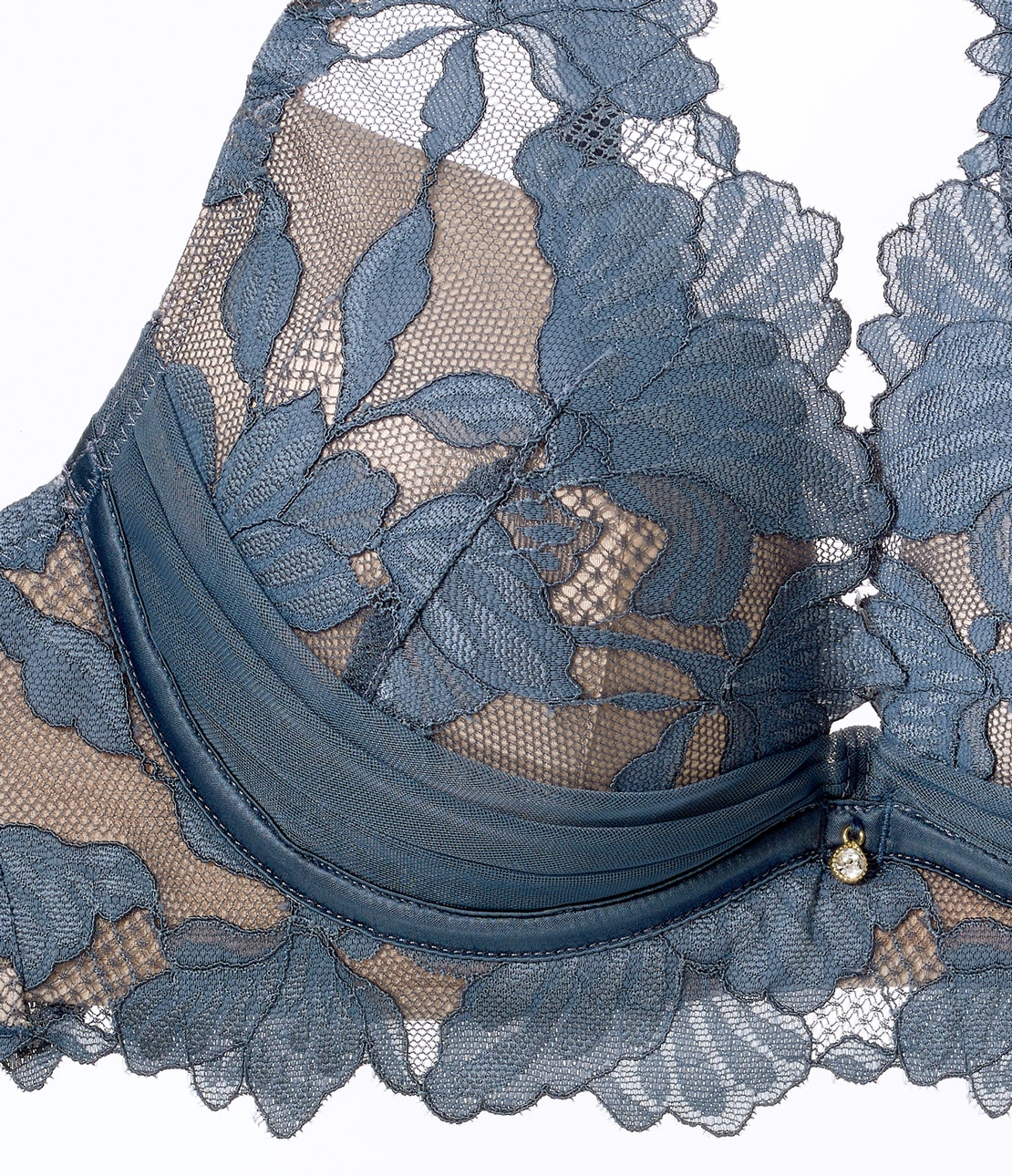 ローズレースノンワイヤーブラ(D75 ブルー)¥5,100 (本体価格 ¥4,637)