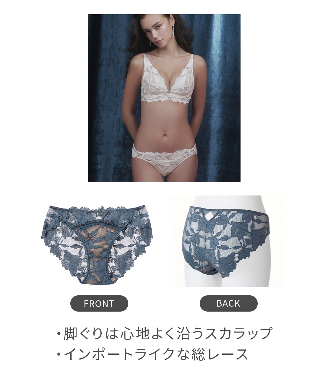 もりこれフラワーエンブロイダリーレースブラセットP(D75 ブルー)¥5,100 (本体価格 ¥4,637)