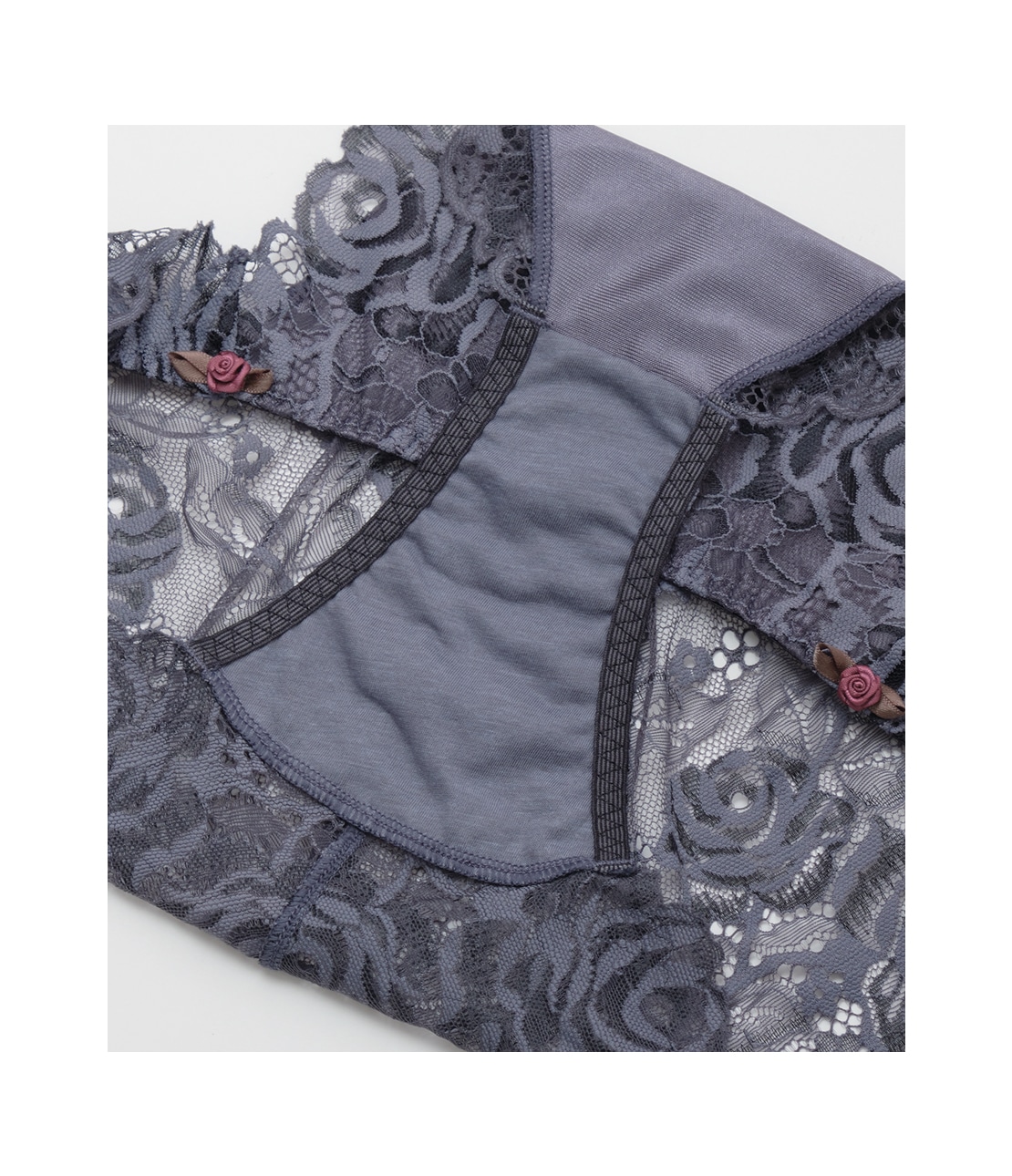 ・大輪のローズ柄が目を惹くツートーンのストレッチレースに、薄手生地を裏打ちして透けにくい。