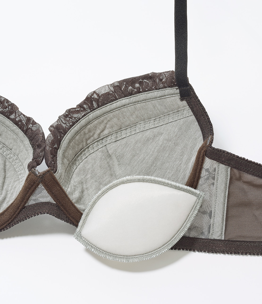 ・取り外しできる薄手パッドでボリュームをプラスし、自然に寄せ上げて整える。