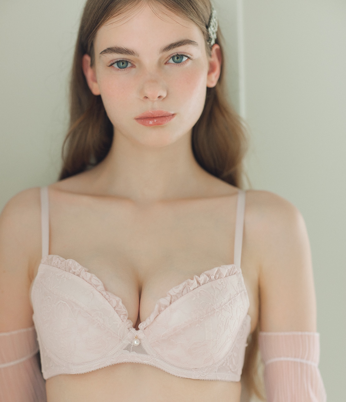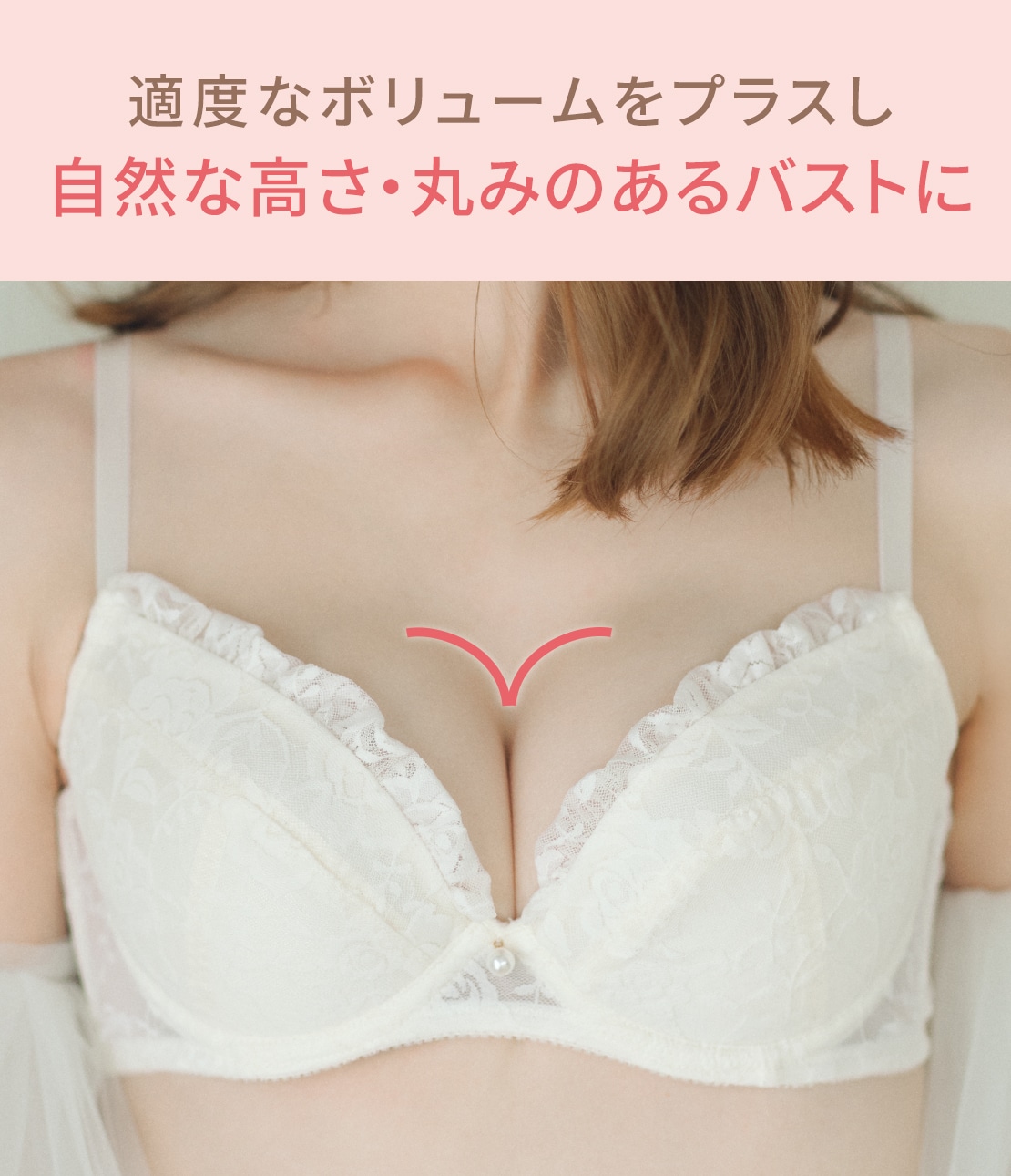 ・取り外しできる薄手パッドでボリュームをプラスし、自然に寄せ上げて整える。