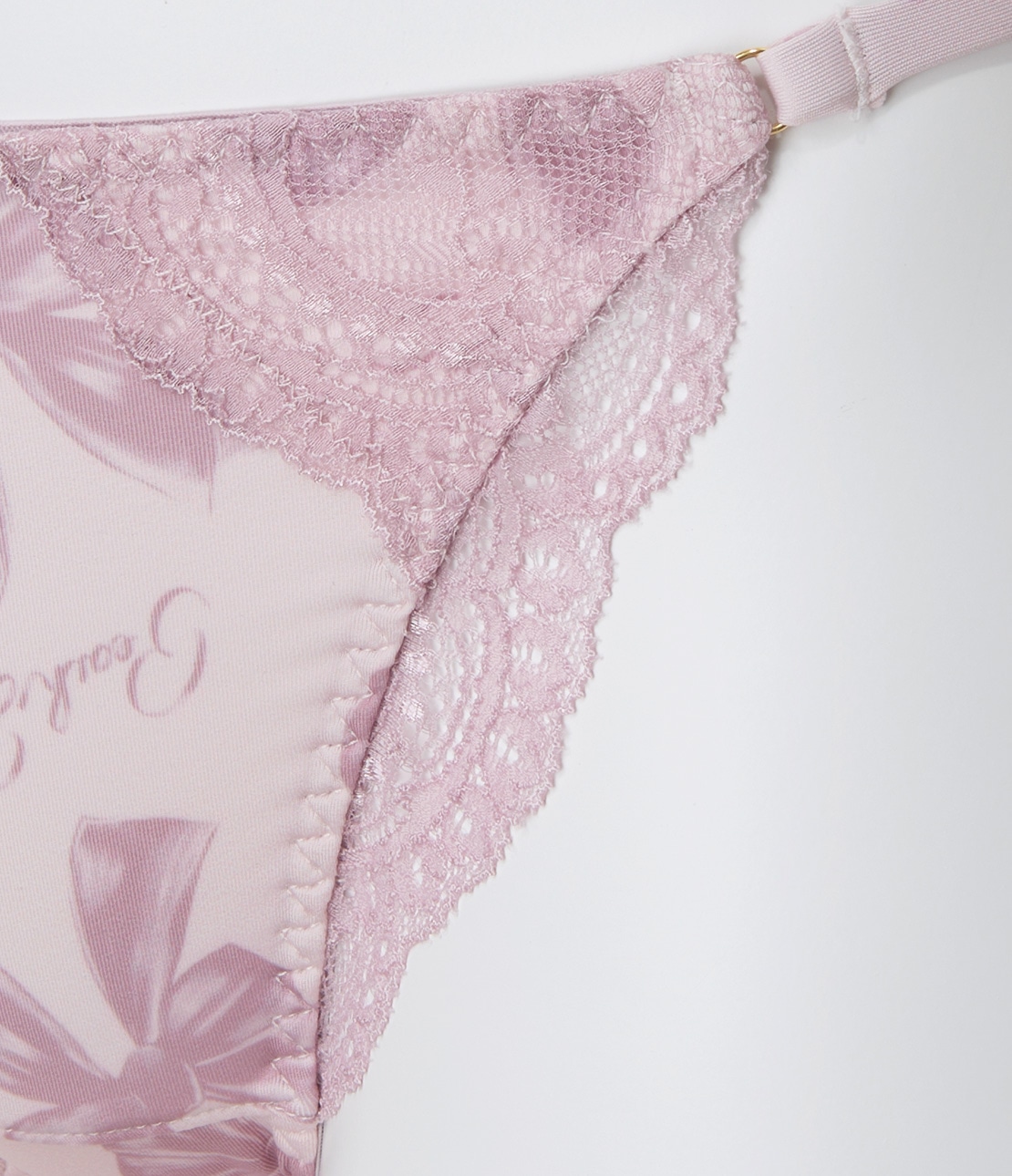 ・身生地はプリント柄のストレッチ生地。上部左右にストレッチレースを重ねて、プリントが透けて見えるデザイン