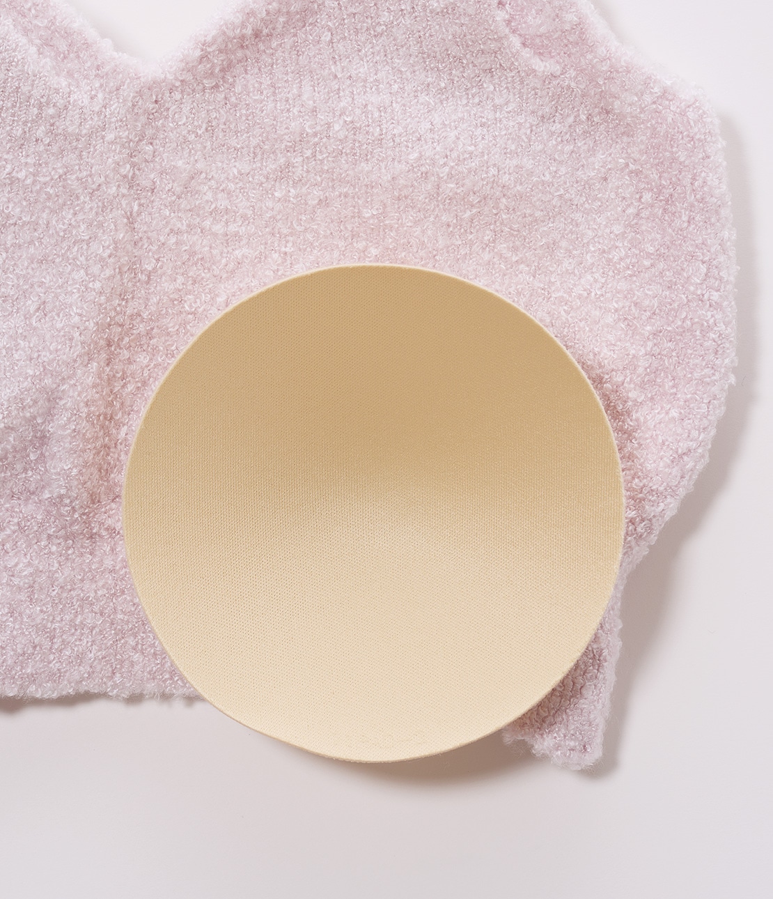 ・胸元は共生地二重でパッドポケット付き。取り外しできる丸型のパッド入りで、バストを自然な丸みに整える。