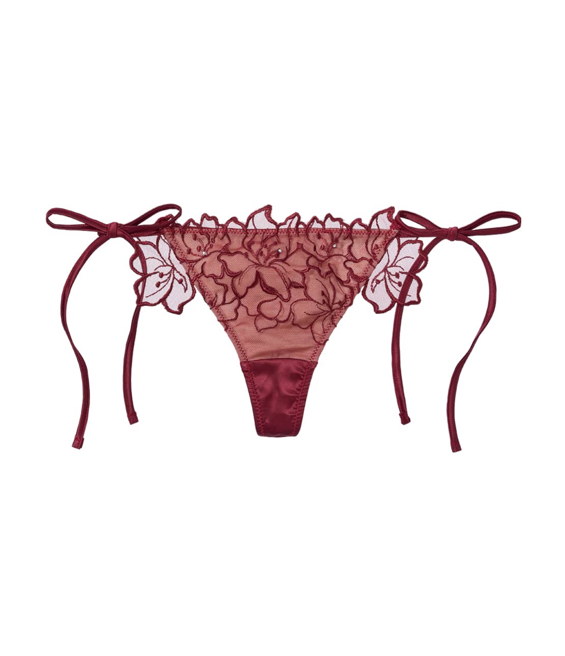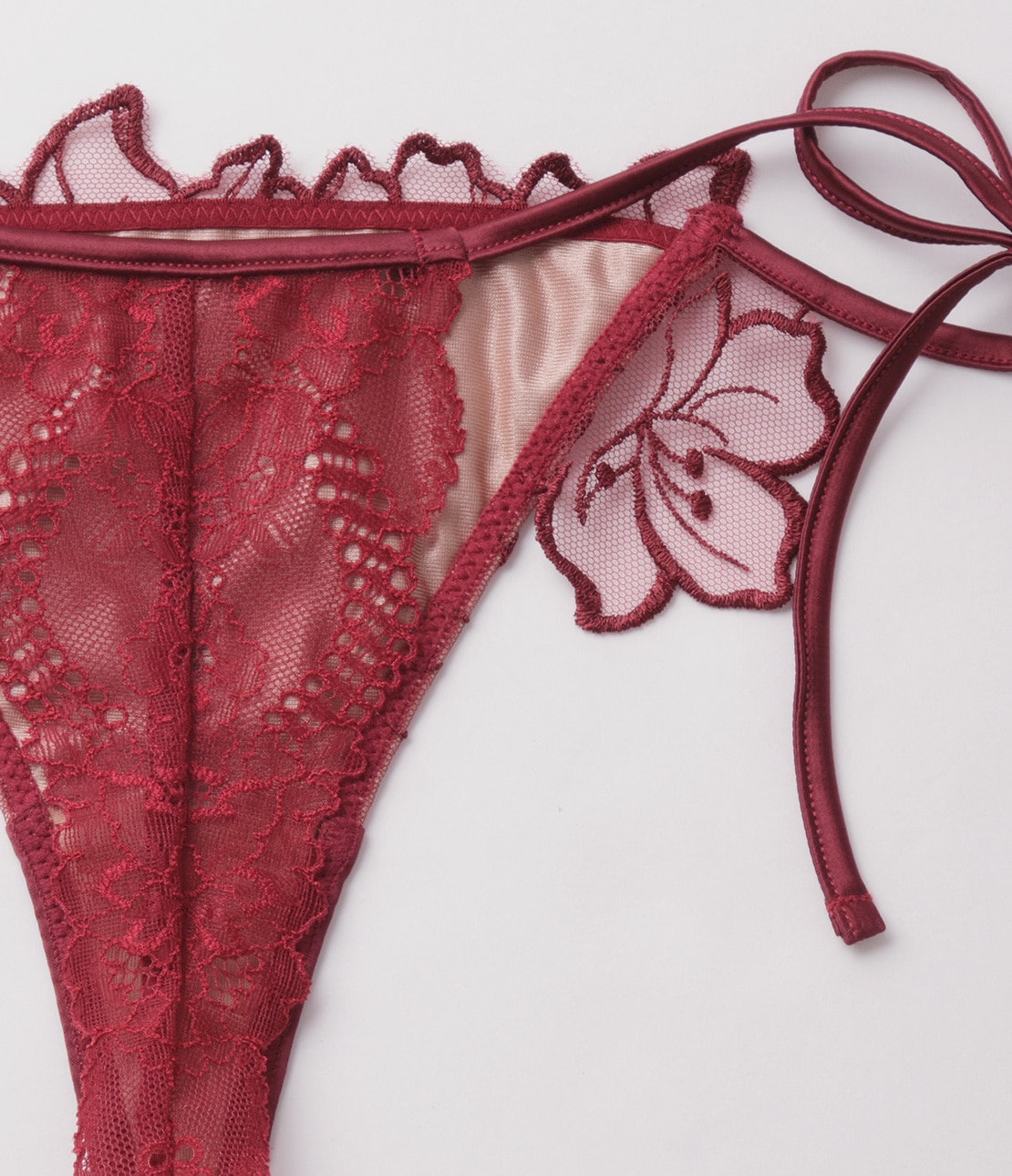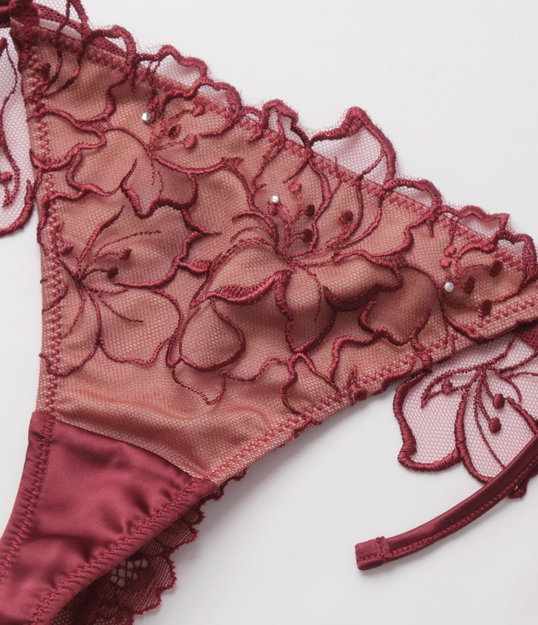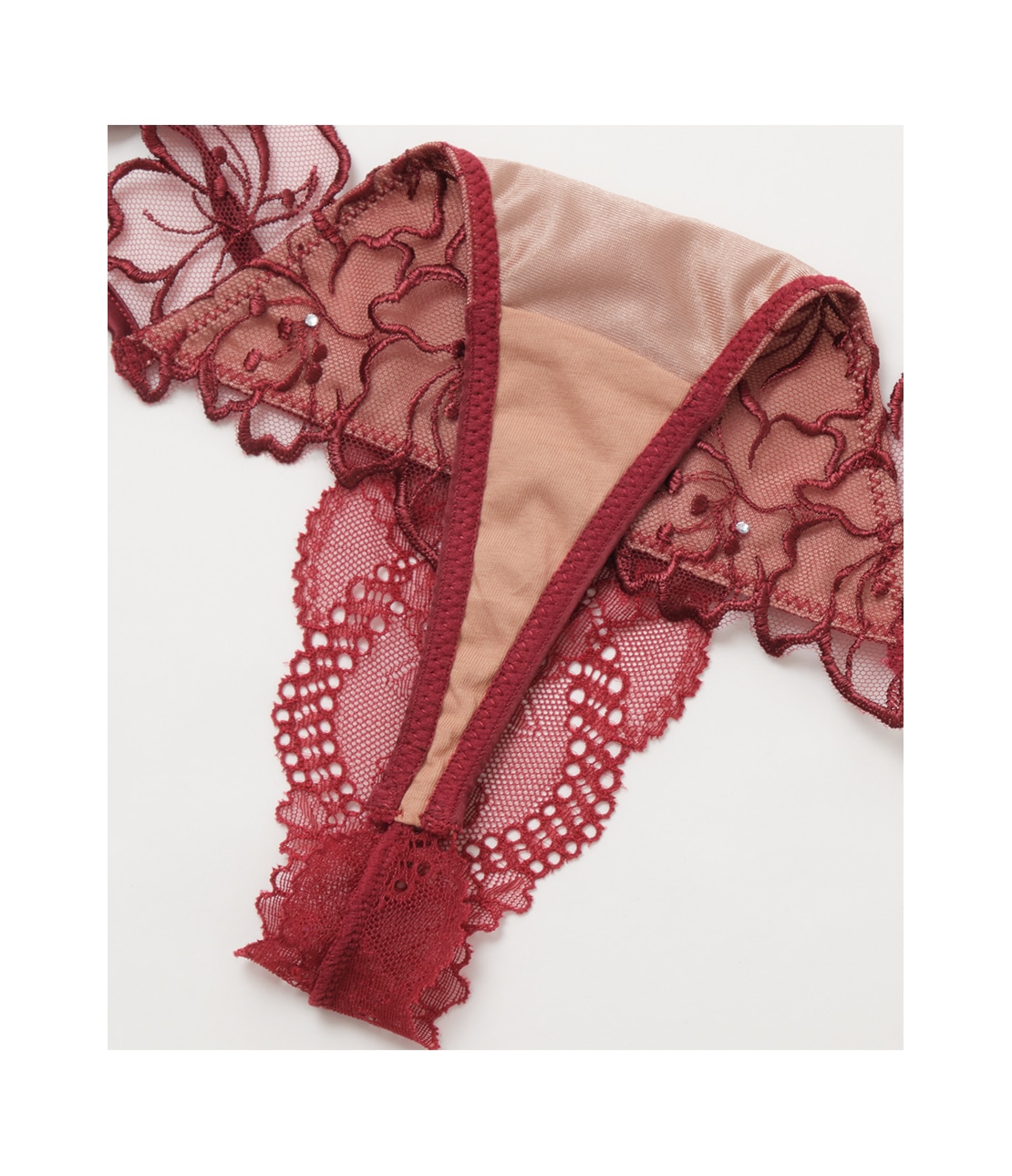 【Tバック】咲き誇る刺しゅうにクリスタルが輝いて、特別な日にふさわしい華やぎ。