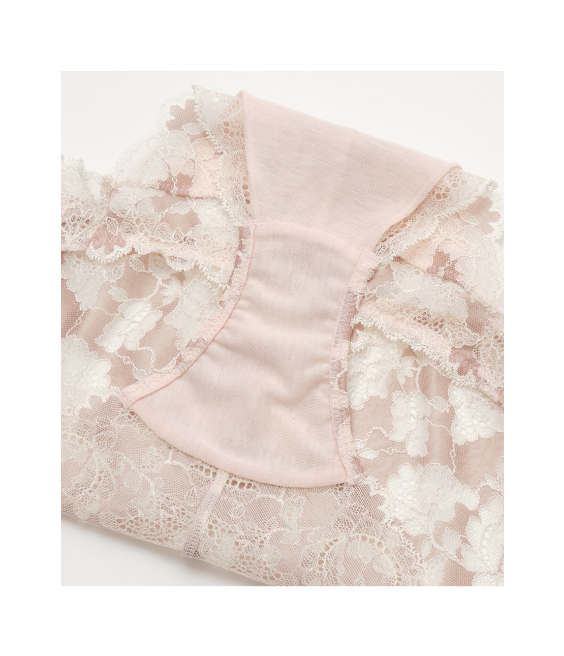 ・上部のみ、透け感のあるレース1枚仕立て。その下はコットン混生地を裏打ちし、透けにくい仕様。