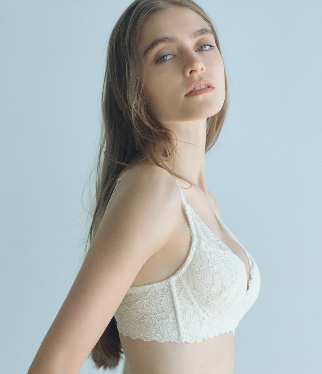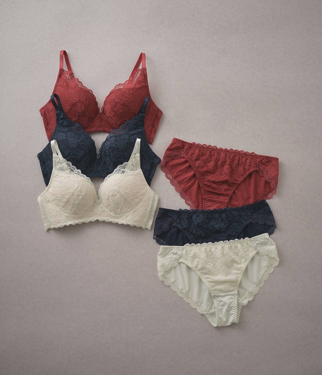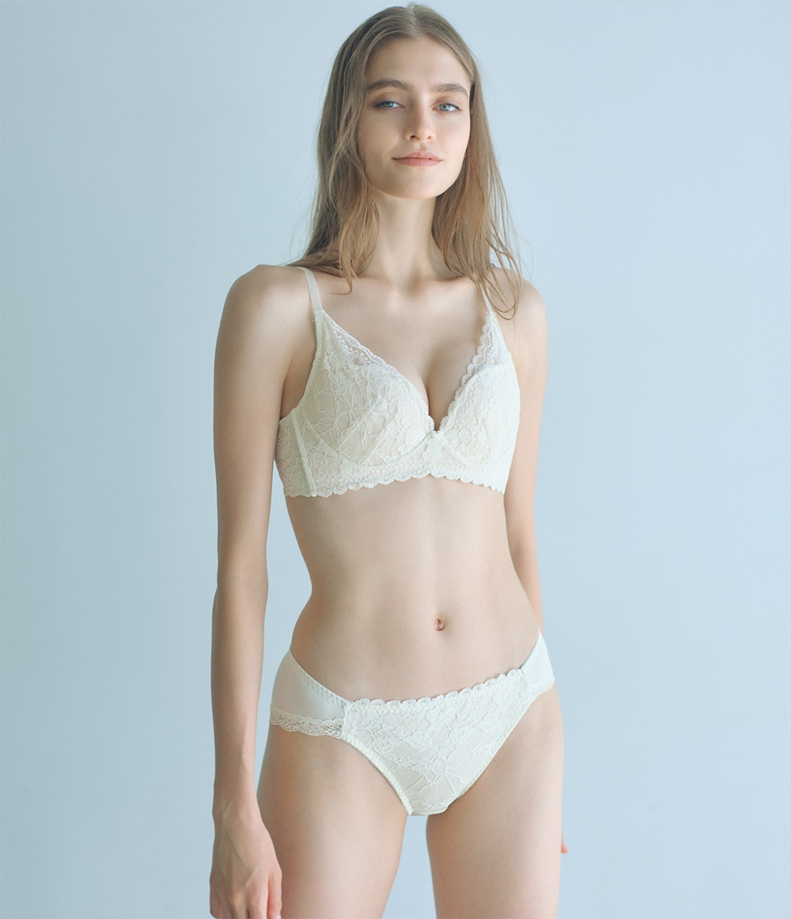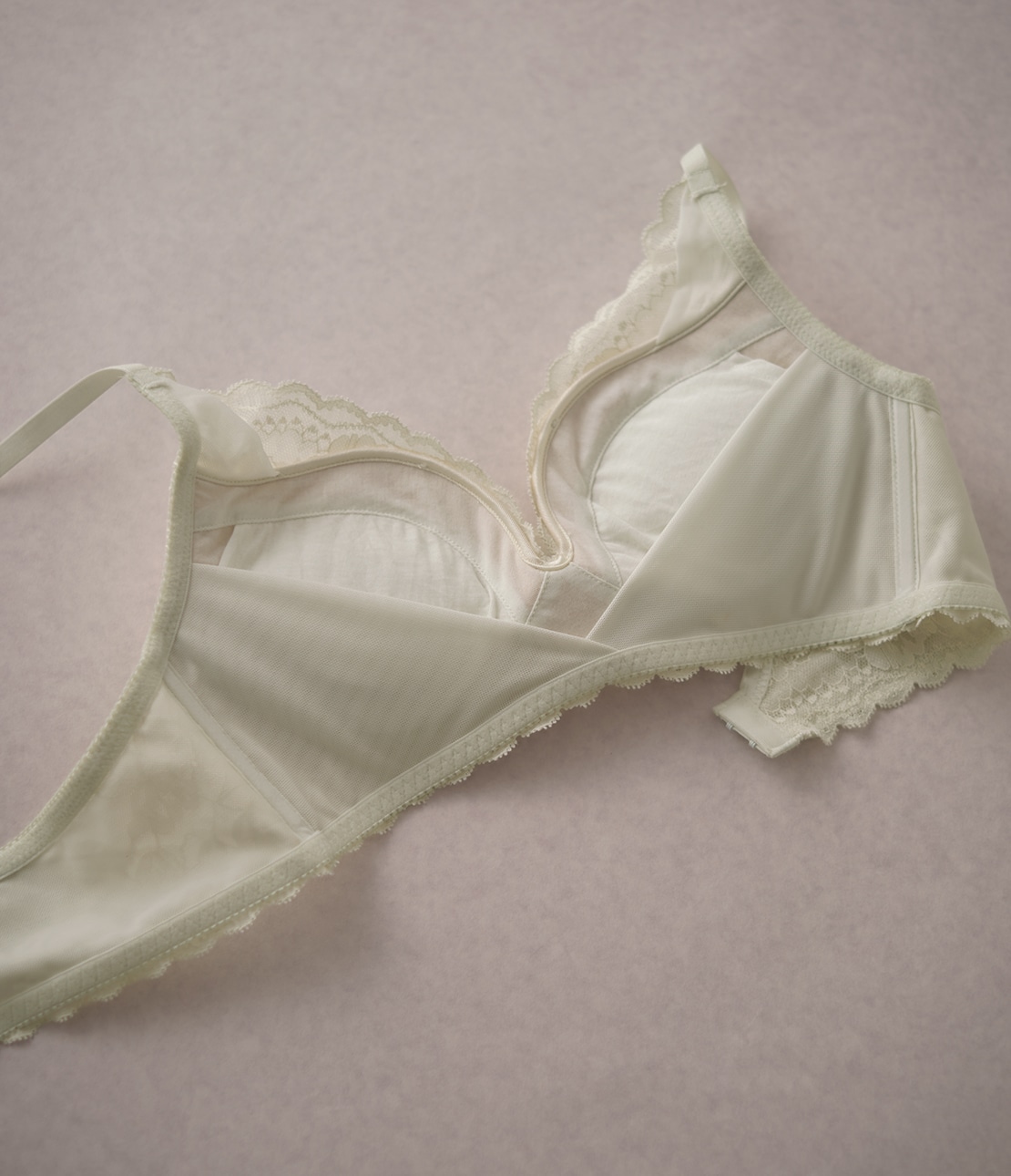 ・繊細なストレッチレースを全体に使用。ライニングも同色で、ベーシックな印象に