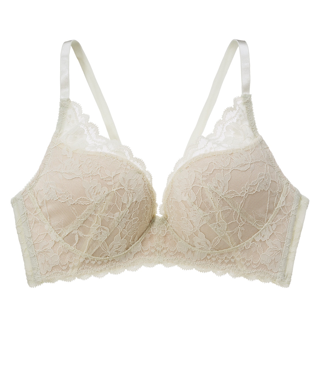 【ノンワイヤーブラ】フェミニンな総レース。ラクな着け心地でも、しっかり谷間寄せ。