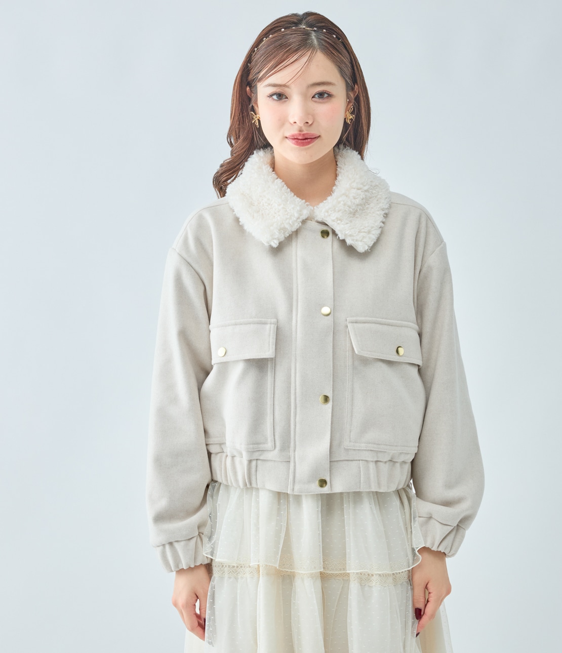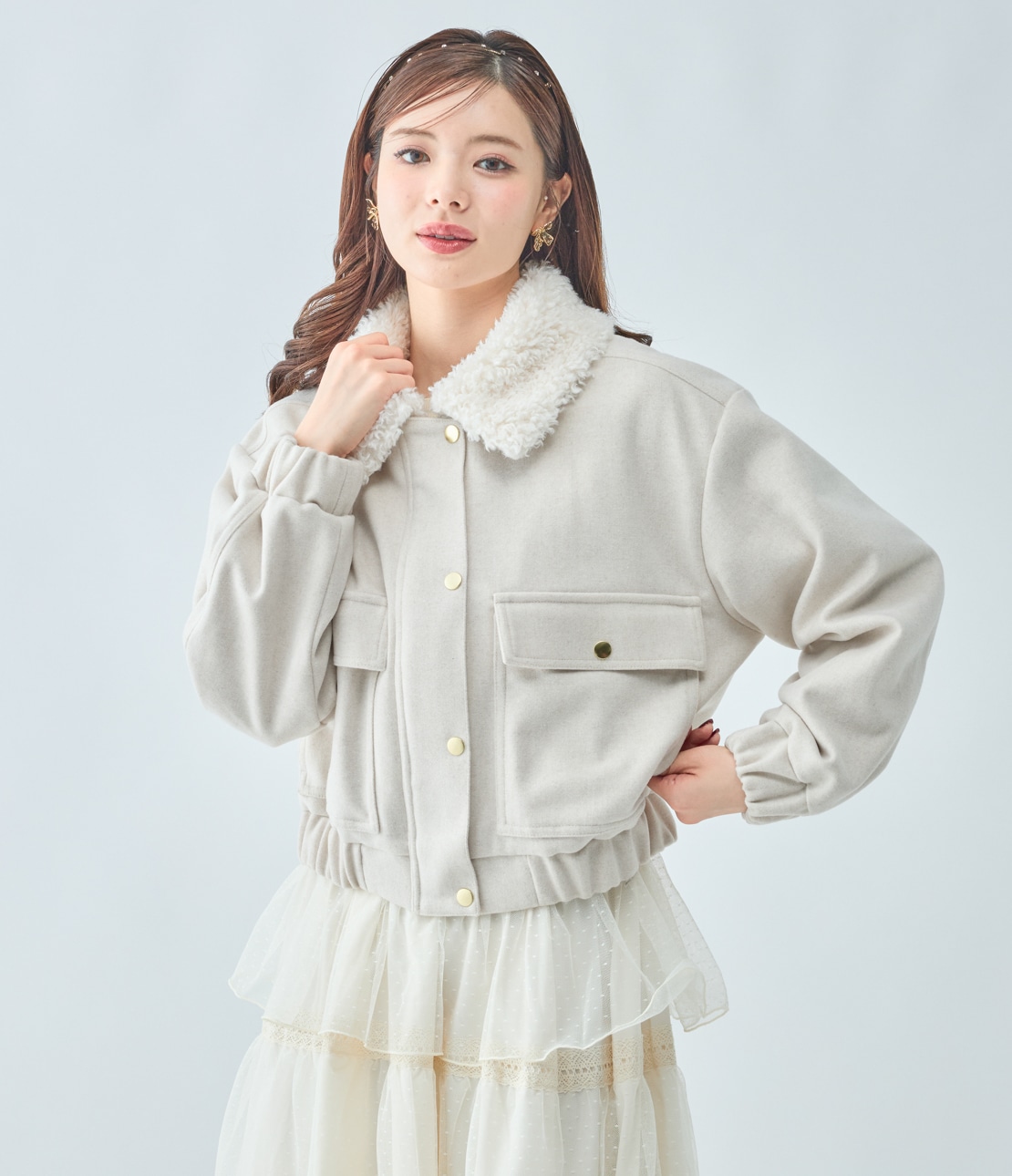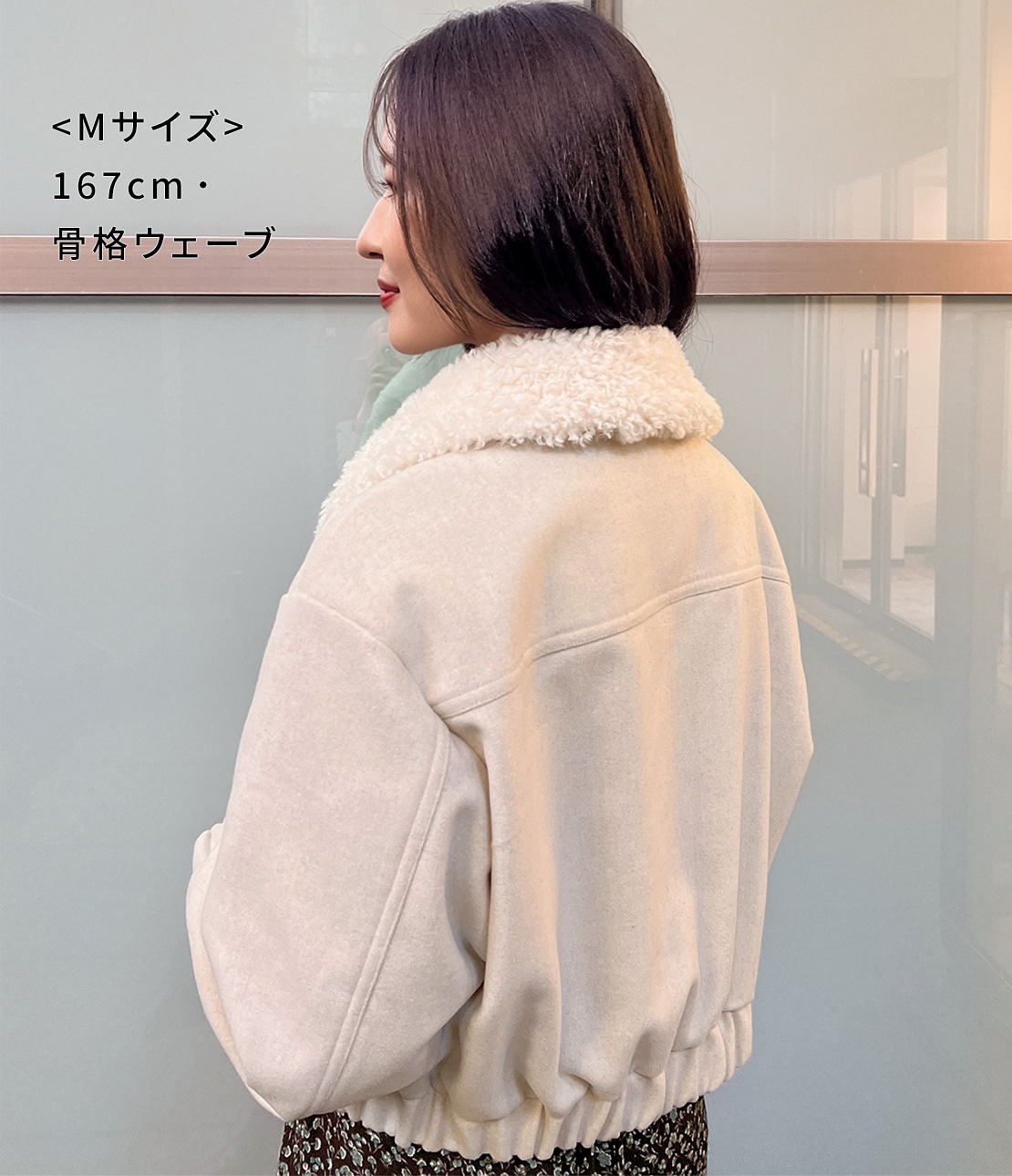 ・ボリュームたっぷりのファーカラーがキャッチーで、小顔効果も。