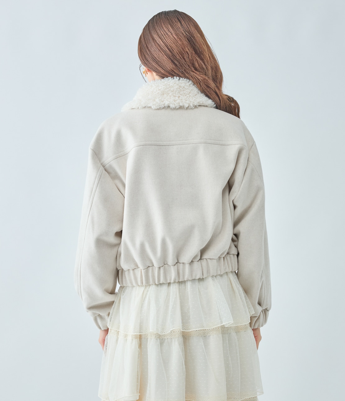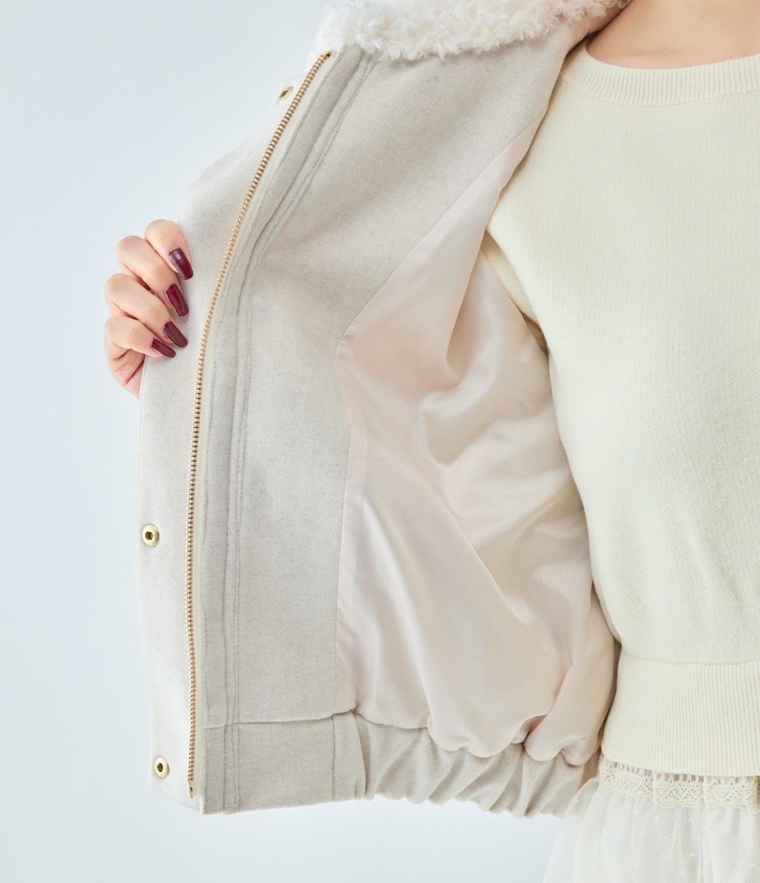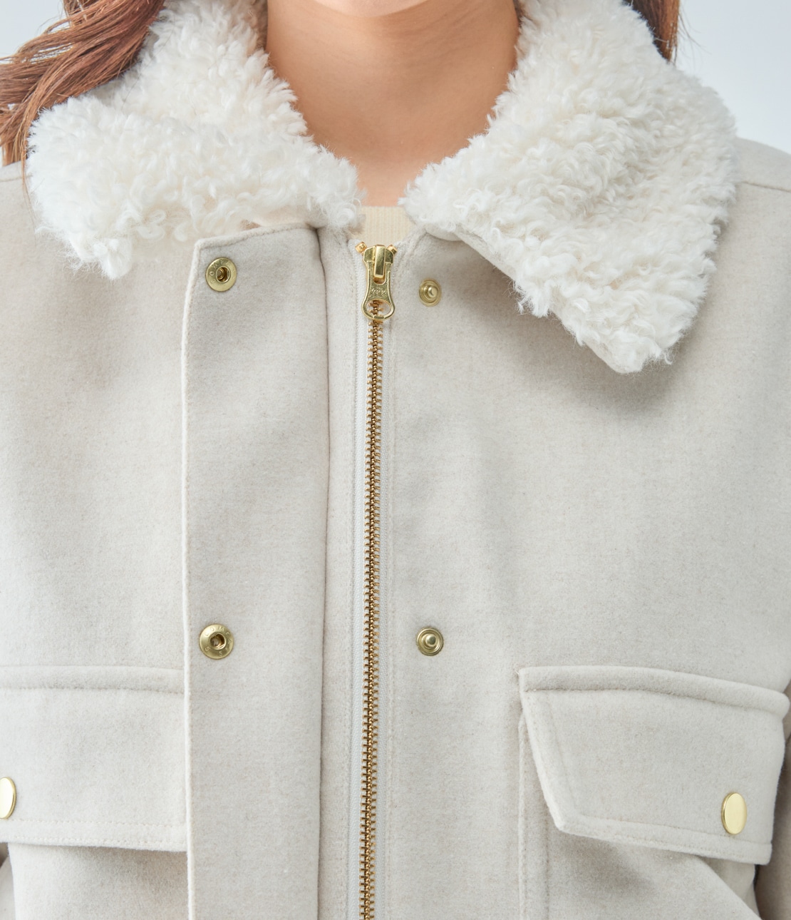 ・襟はプードルのようにくるくるとカールした、キュートな質感のエコファー