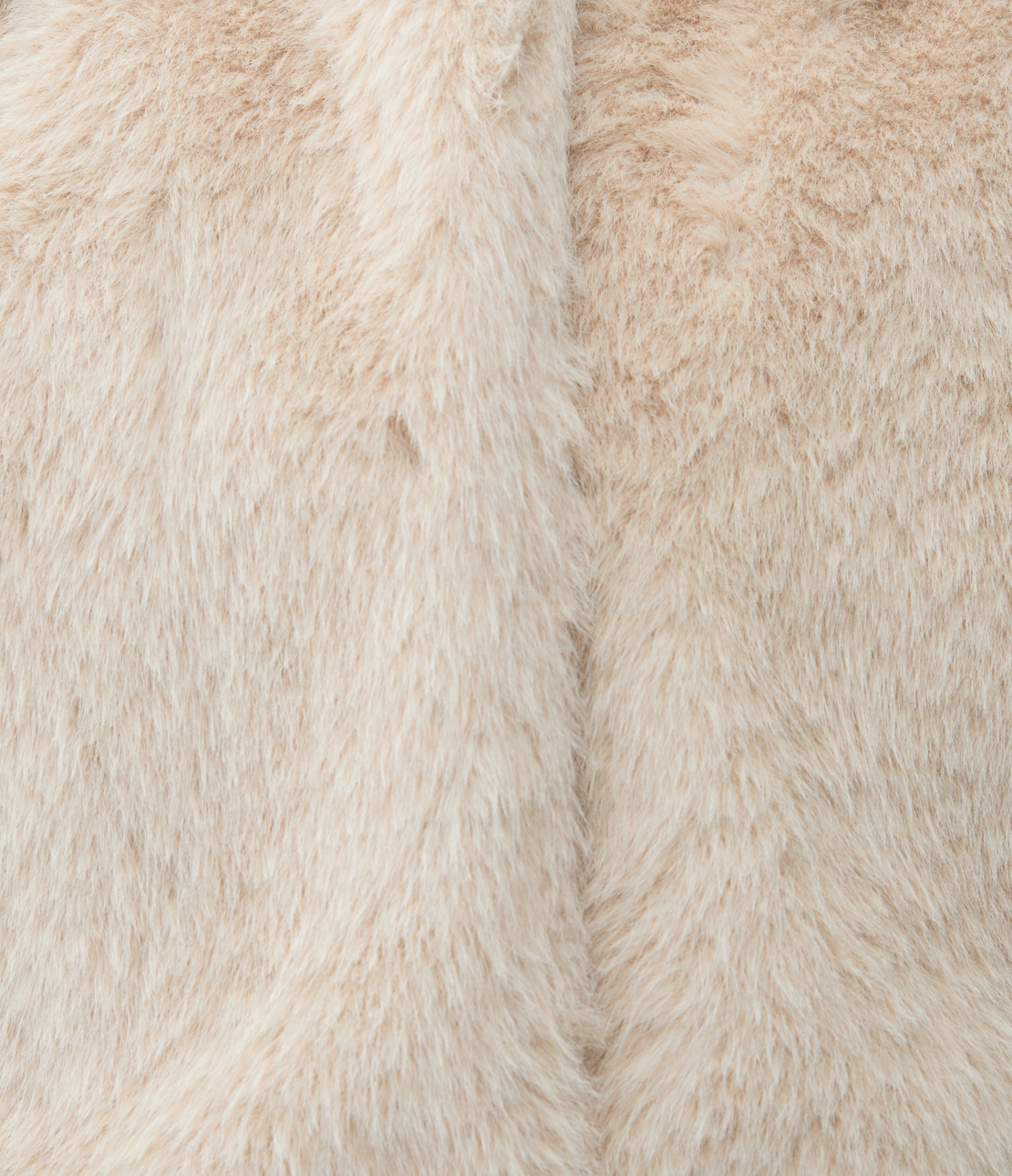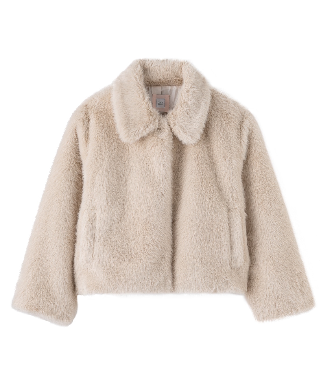 ・ふわふわと柔らかな手ざわり。毛足が長すぎず、すっきり着られるエコファー