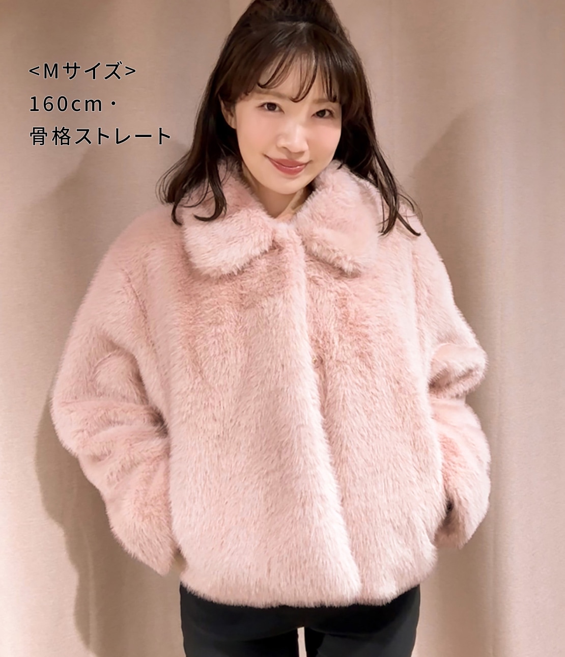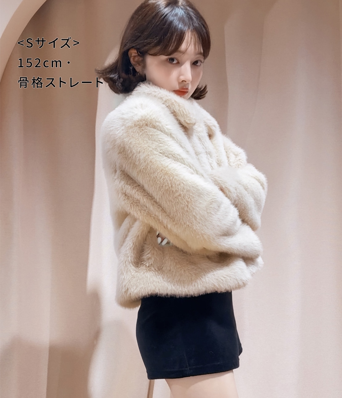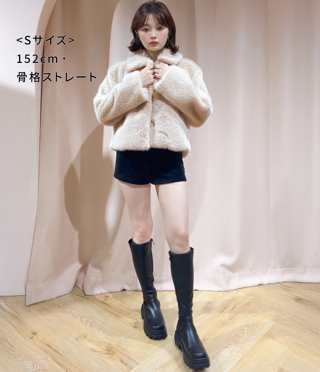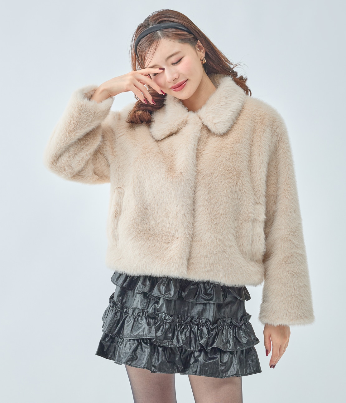華やかなインパクトならファーコート。ショート丈で腰高バランスをキープ。