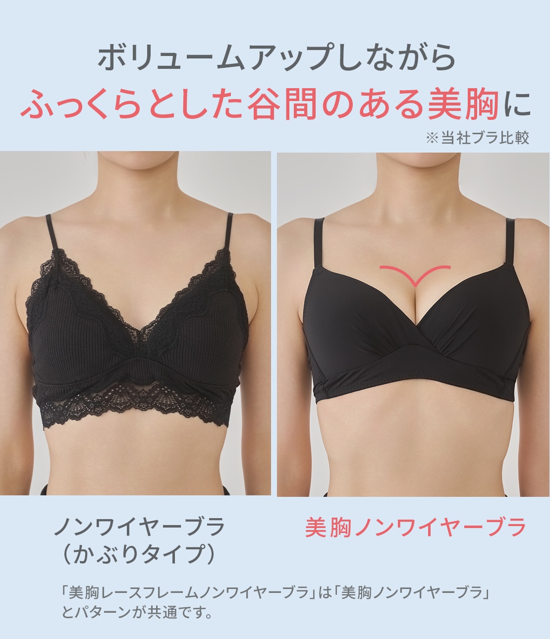 ・好評の美胸ノンワイヤーブラに、レースをプラスした新デザイン。