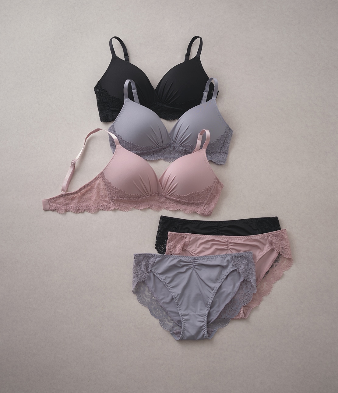 ノンワイヤーブラにフェミニンなレースデザイン。ラクなフィット感で美胸メイク。