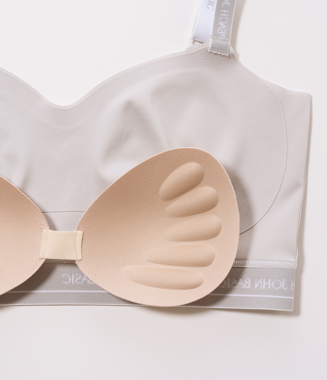 ・左右をつなげたパッド入り。脇側にほんのり厚みがあり、ナチュラルな丸みに整える。