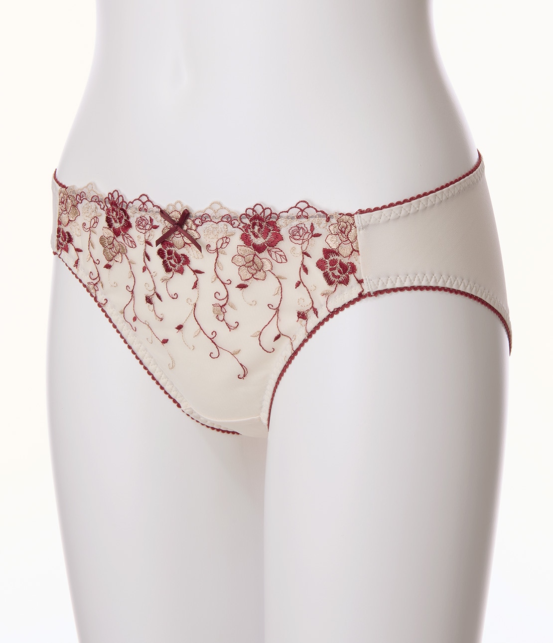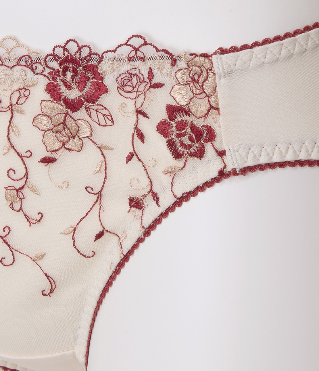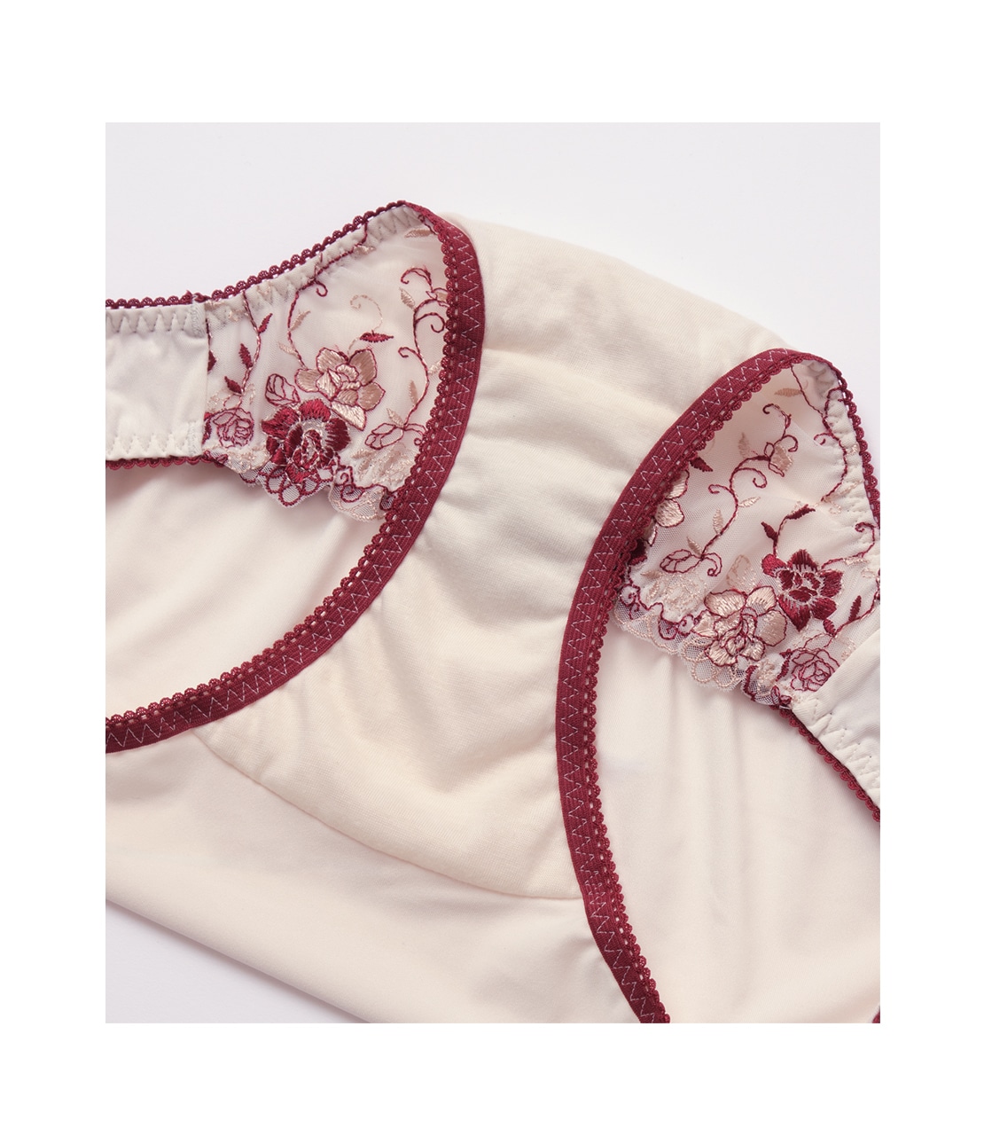 ・フロントは2色刺しゅうレースにコットン混生地を裏打ちし、透けにくい
