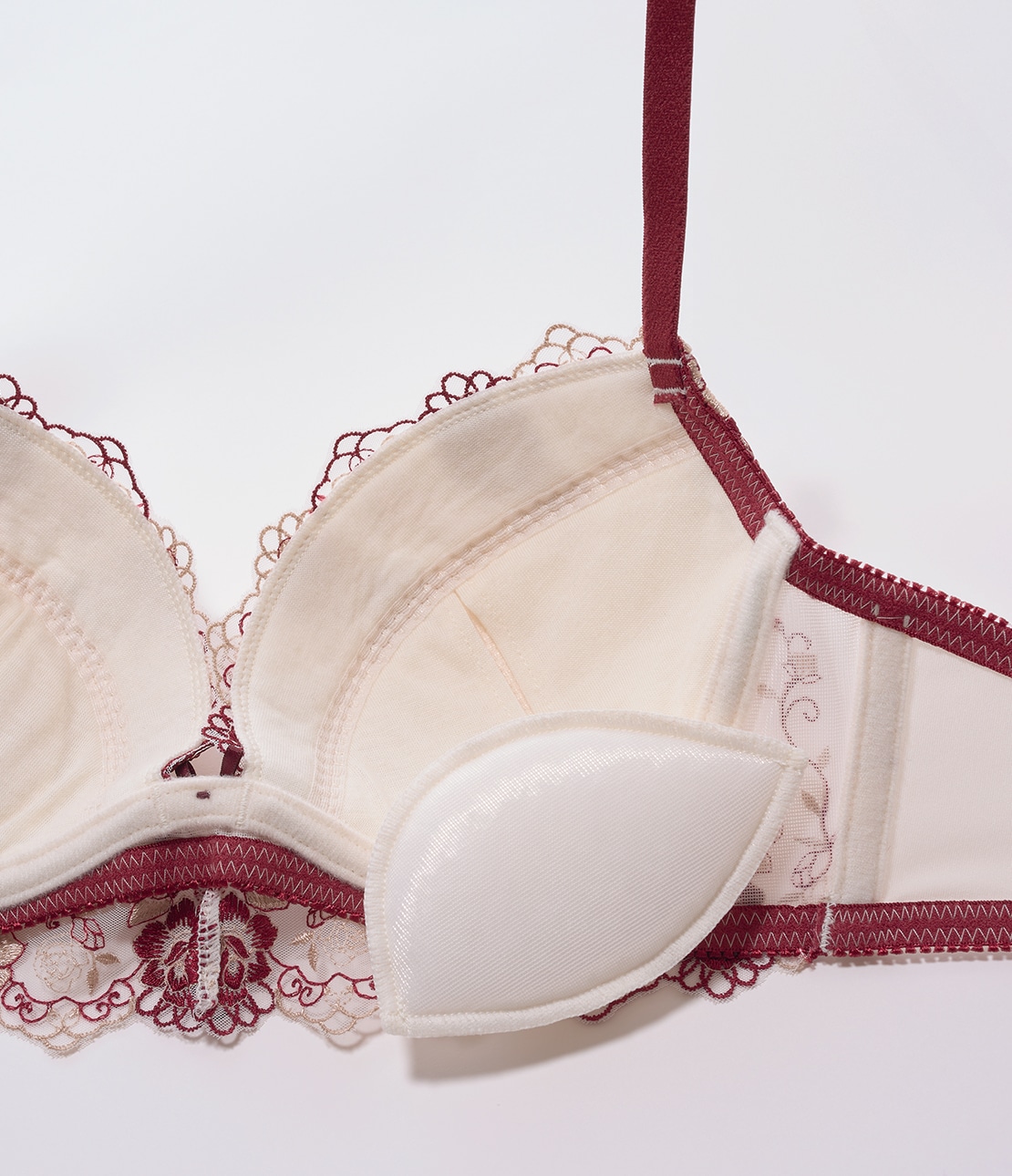 ・取り外しできるパッド入りのカップでボリュームをプラスし、きれいな谷間をメイク。