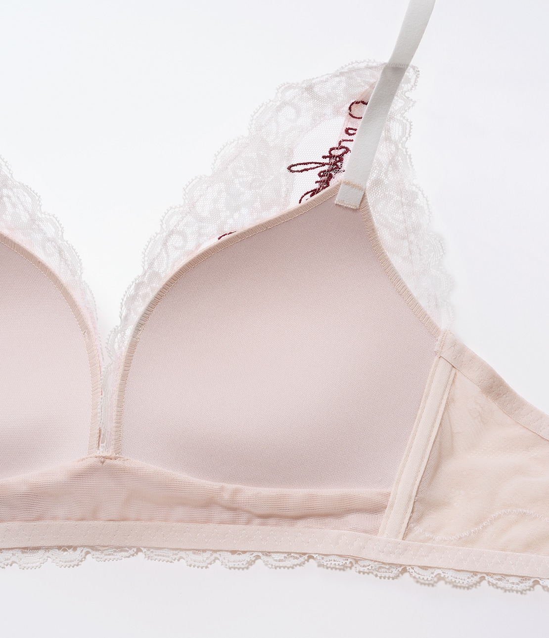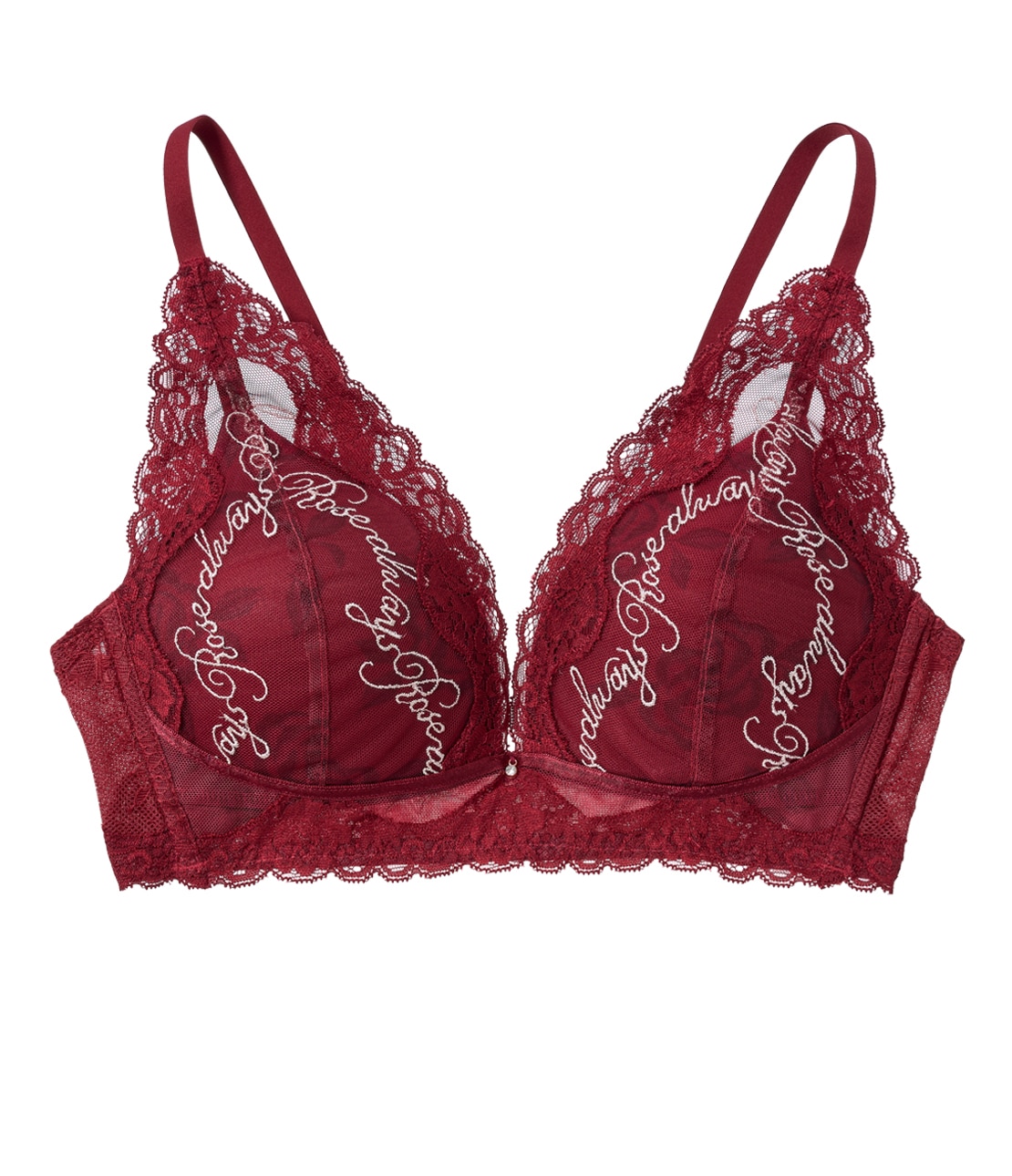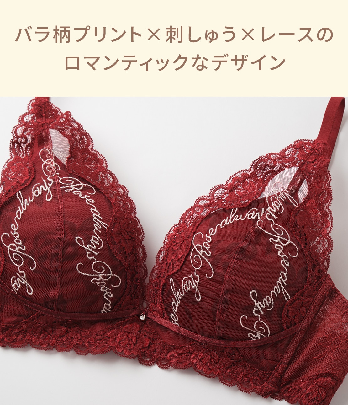 バラ柄&メッセージ刺しゅうに心ときめく!しっかり盛れるノンワイヤーブラ。