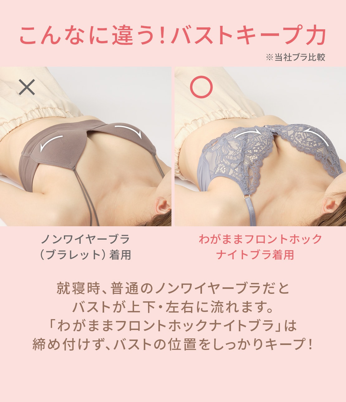 ・睡眠時のバストの動きを抑えて、安定感をサポート。