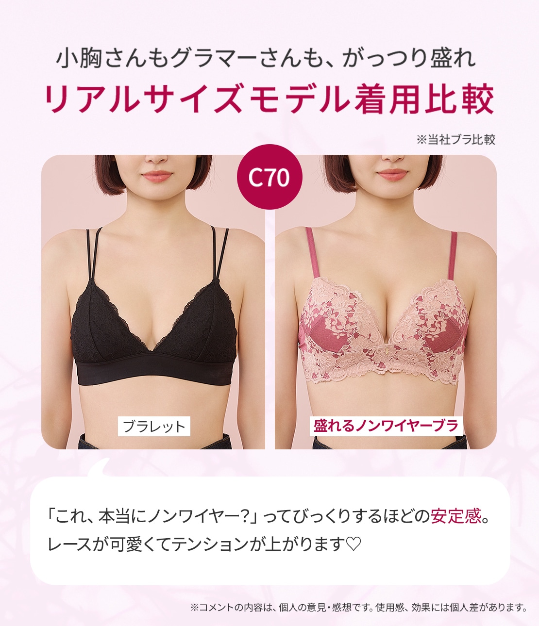 ノンワイヤーでも谷間爆誕!離れ胸さんにも好評のノンワイヤー盛りブラに、待望の新デザイン。