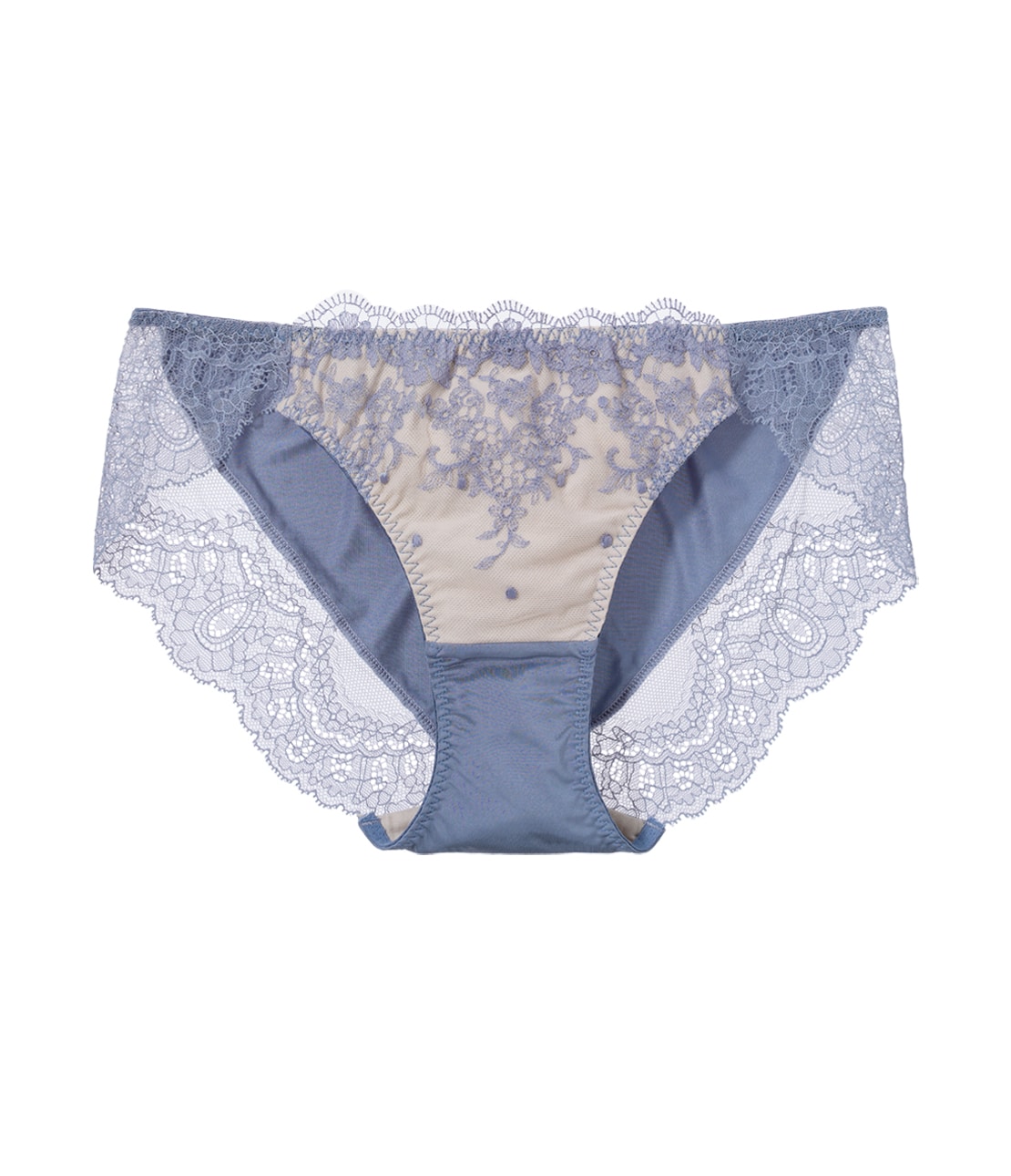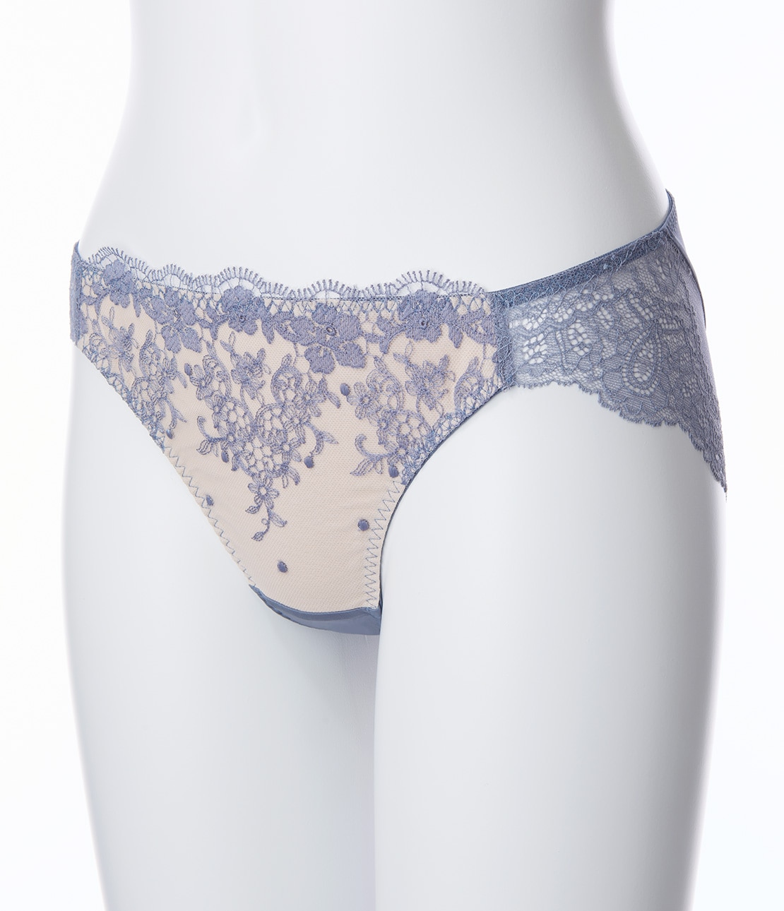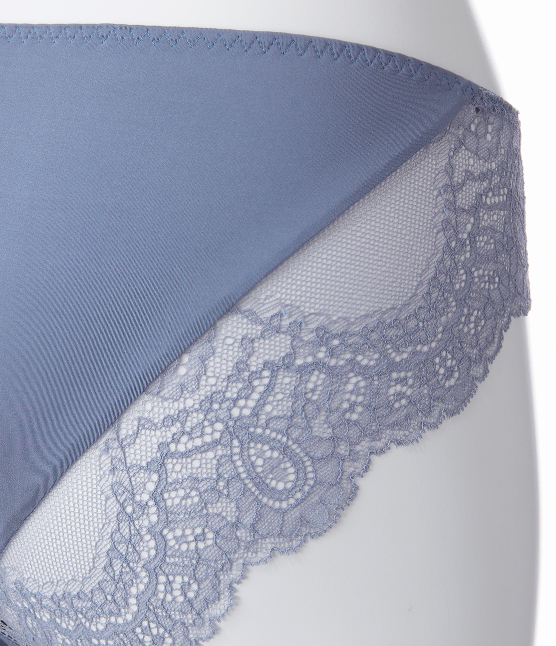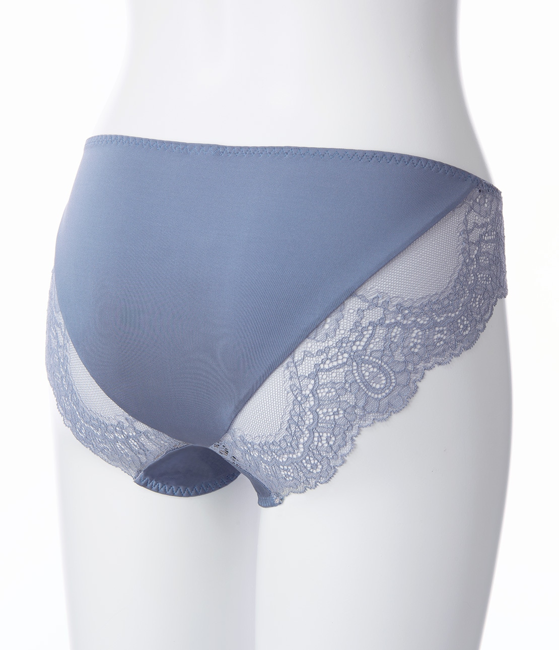 ・脚ぐりを幅広のストレッチレースに切り替え、ソフトなはき心地。美しいスカラップで、後ろ姿も華やか。