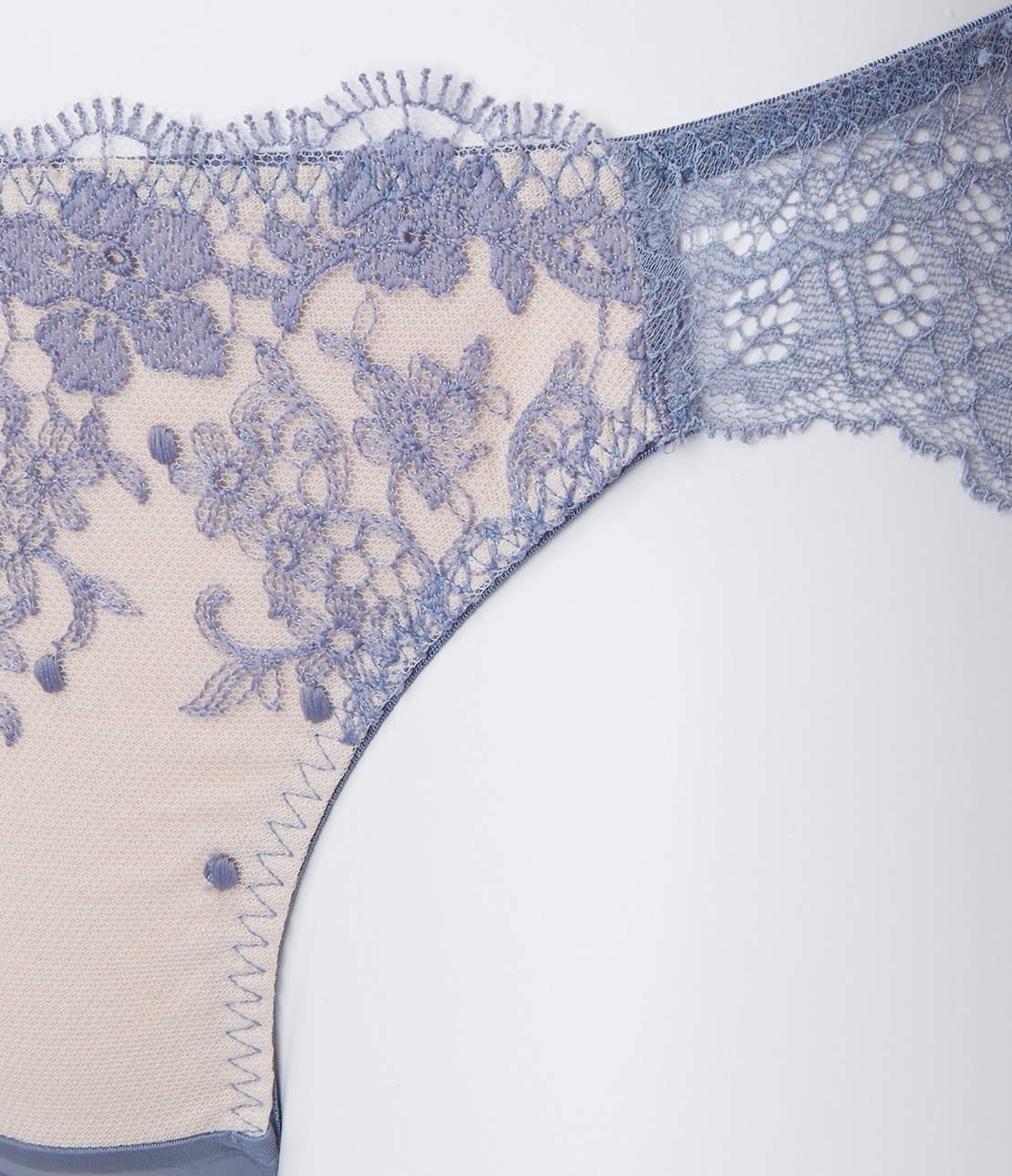 配色のライニングが、刺しゅうレースを引き立てる。日常使いしやすいショーツ。