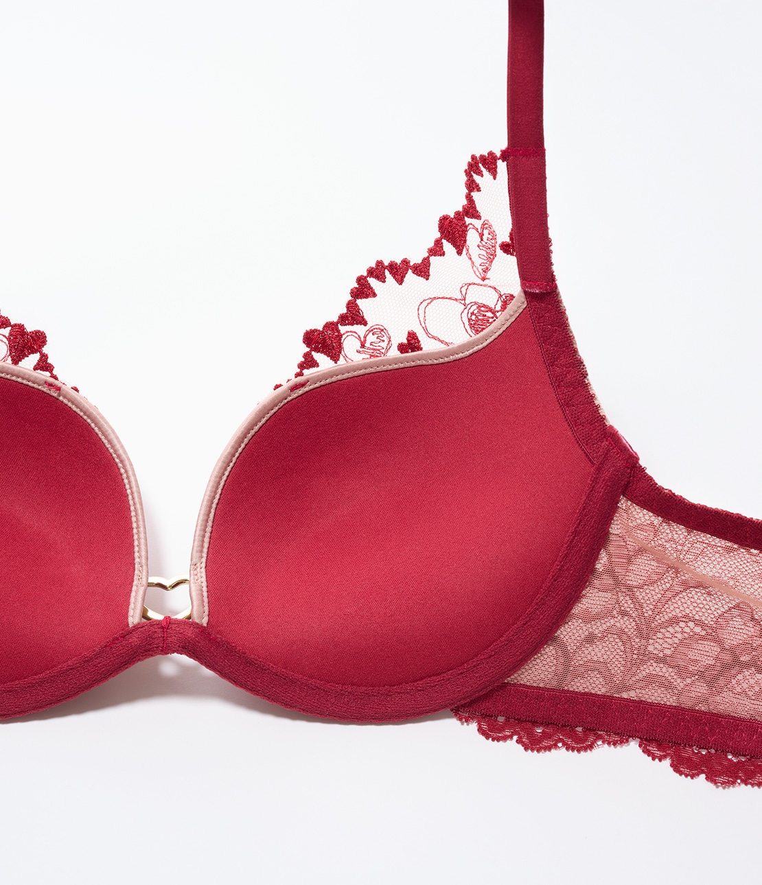 レースも、中央のリングもハートだらけ。恋心を盛り上げつつ、美谷間もメイク!