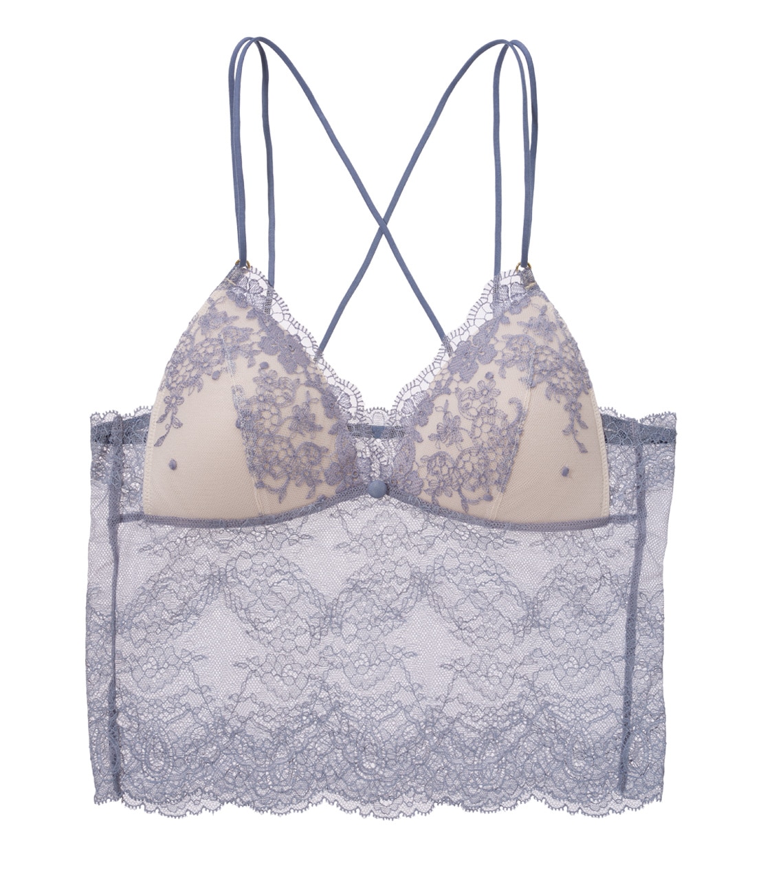 ・2種類のレースを贅沢に使った、カップ付きショートキャミソール。