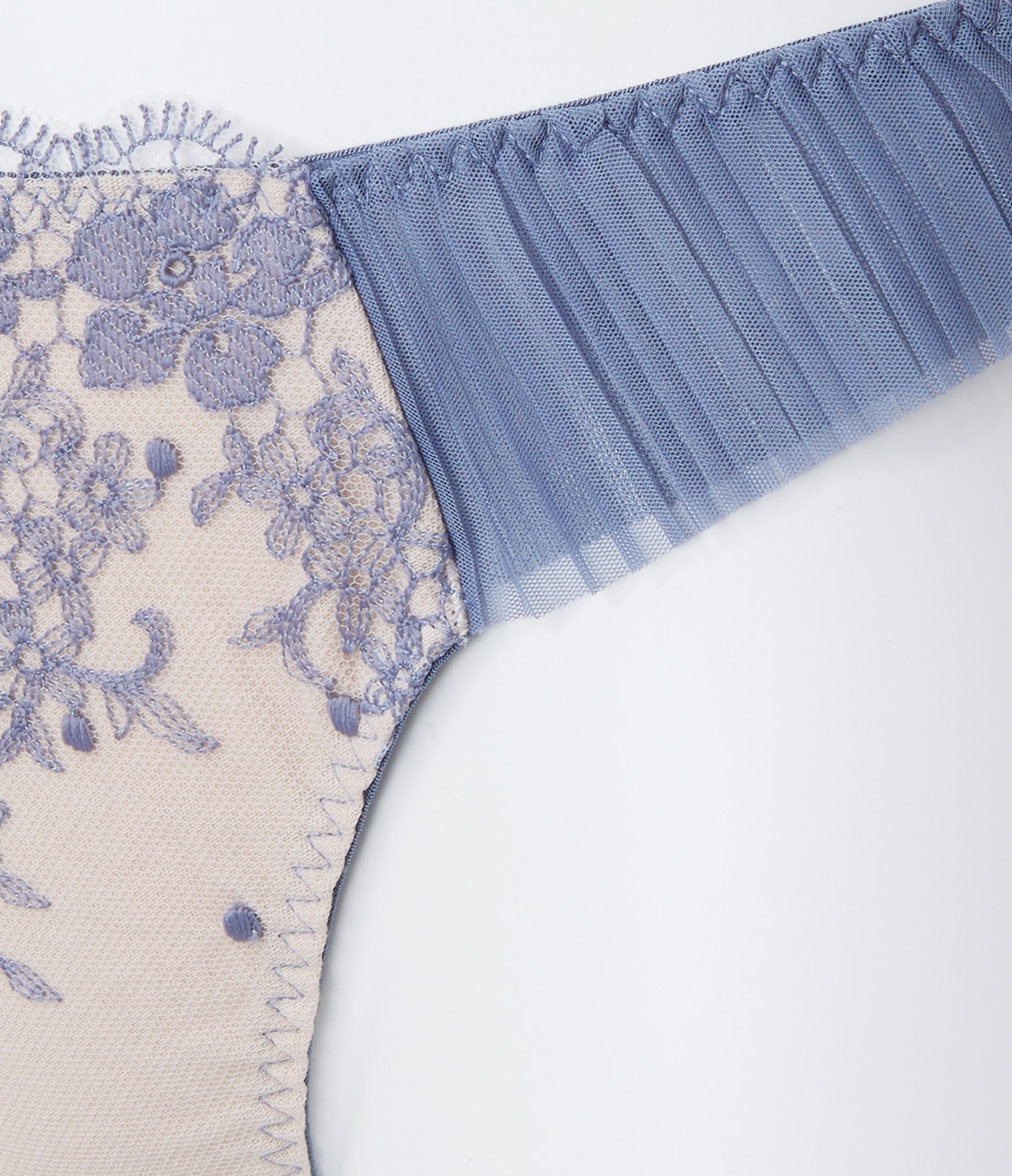 ・両サイドはチュールプリーツ。下辺は切りっぱなしで軽やかな印象。肌側はパワーネットを重ねているので、安定したフィット感。