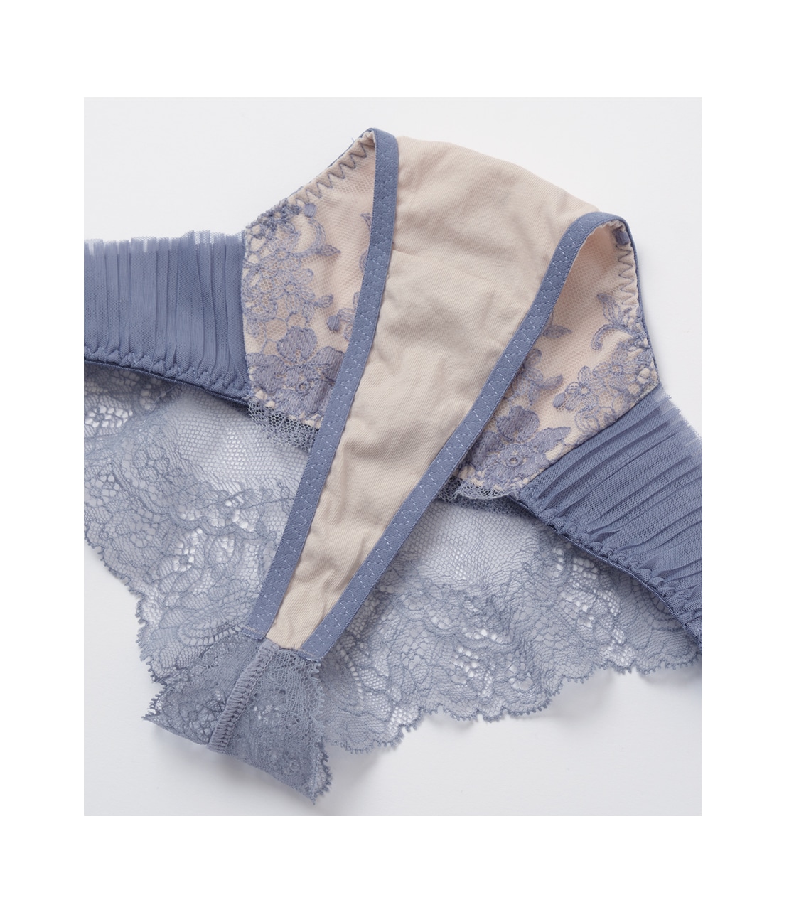 ・両サイドはチュールプリーツ。下辺は切りっぱなしで軽やかな印象。肌側はパワーネットを重ねているので、安定したフィット感。