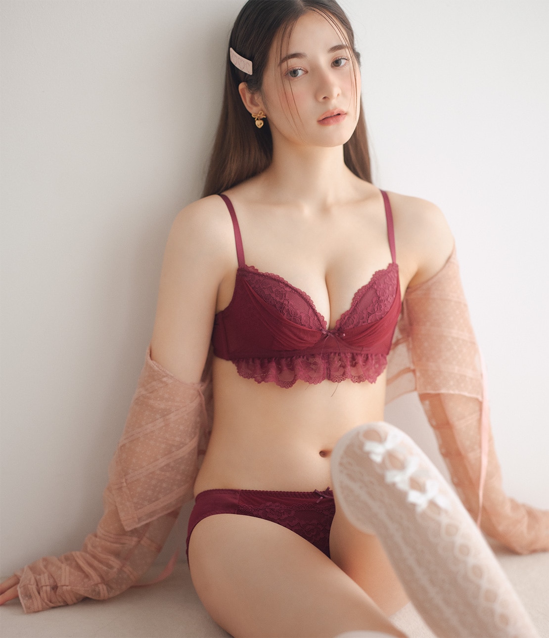 ノンワイヤーでもきれいな丸みをメイク。レースにベールを重ねて、品よくフェミニンに。
