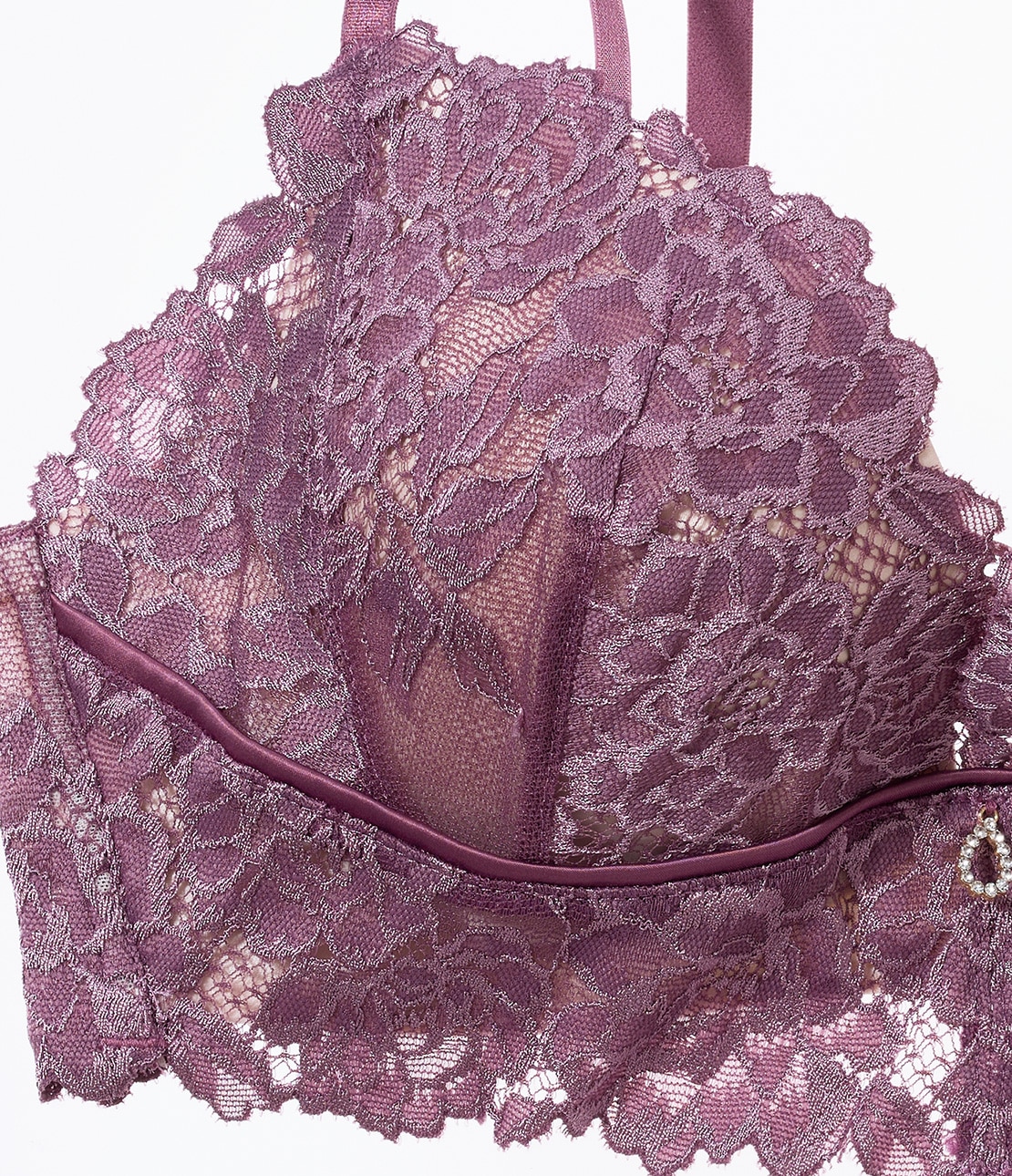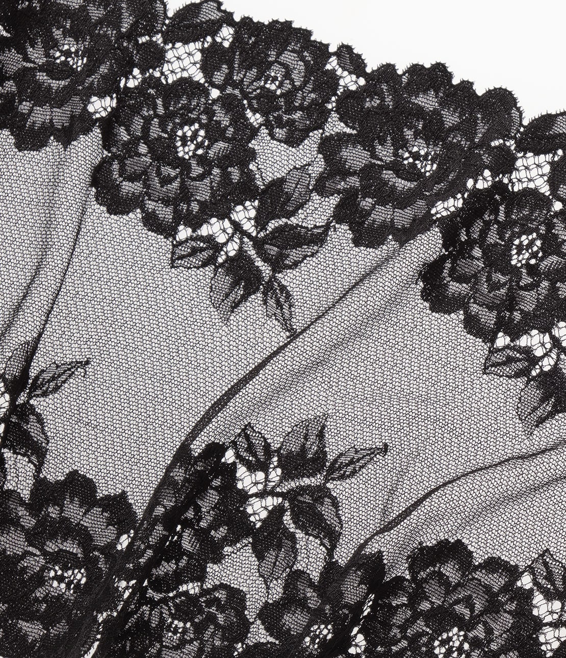 ・光沢のあるストレッチレースをサイドベルトまでフルに使用。アンダーバストも通常より丈長で華やか