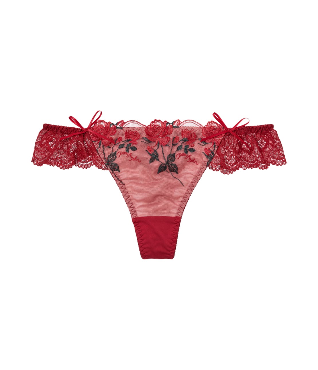 【Tバック】ローズ柄刺しゅうレースに、レーススカラップを合わせて全方位キュート。