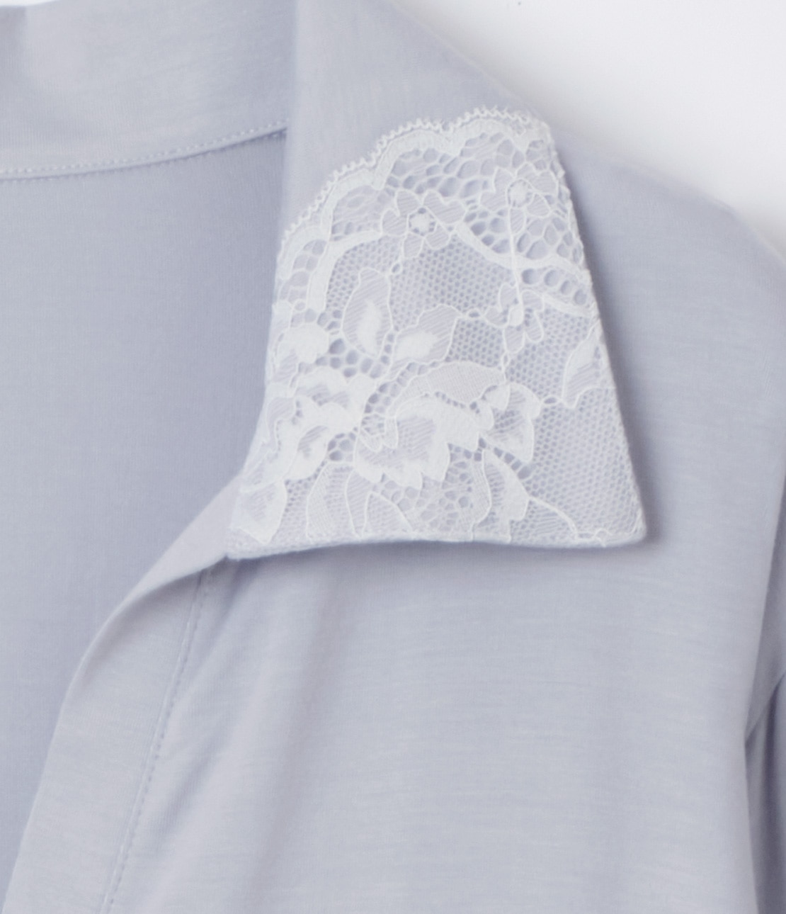 ・襟にレースを重ねたスキッパーカラー。顔まわりを華やかに演出