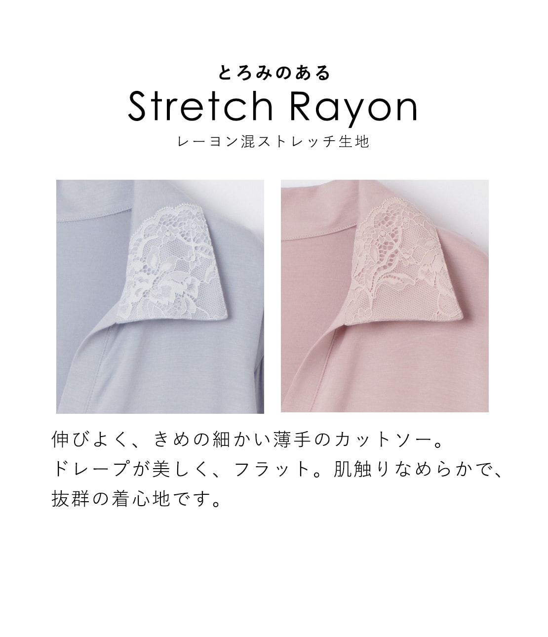 ・身生地は柔らかくとろみのあるレーヨン混ストレッチ素材で、肌ざわり抜群。