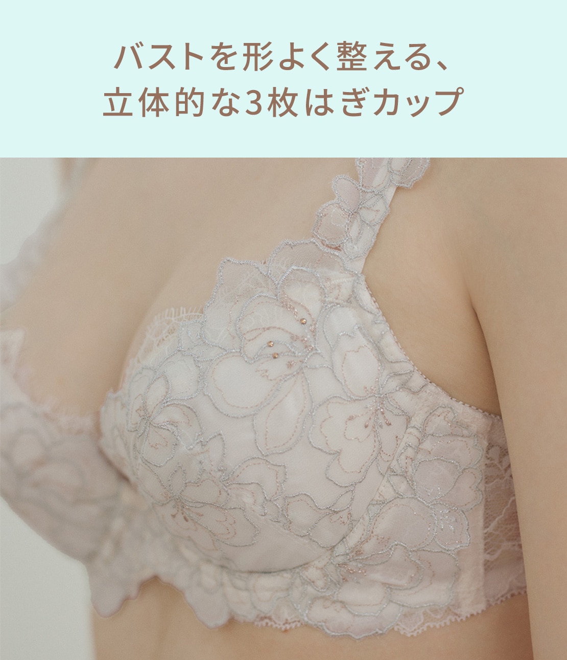 ・3枚はぎの立体的なカップで、バストを形良く整える。