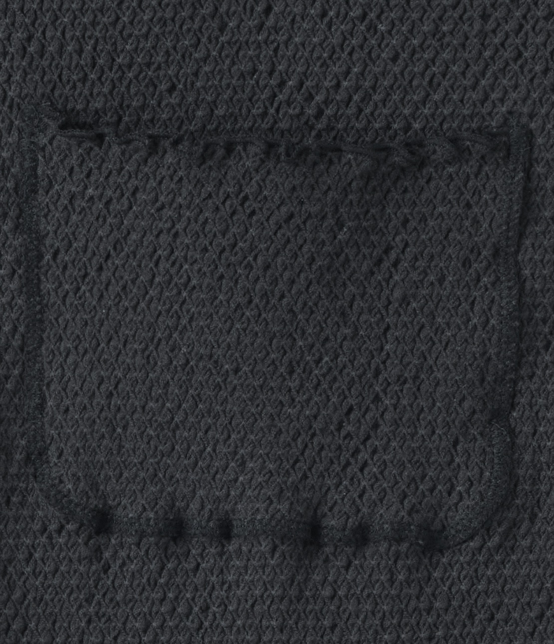 ・コットン90%のストレッチ生地。鹿の子風の立体感ある編地がタテ・ヨコ・ナナメにぐーんと伸びて、ふんわりソフトにフィット