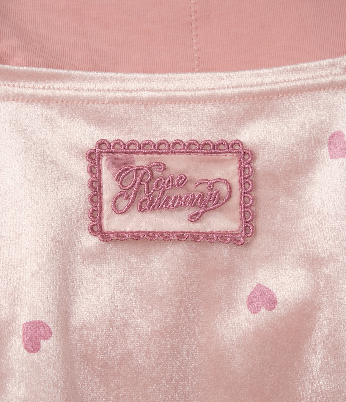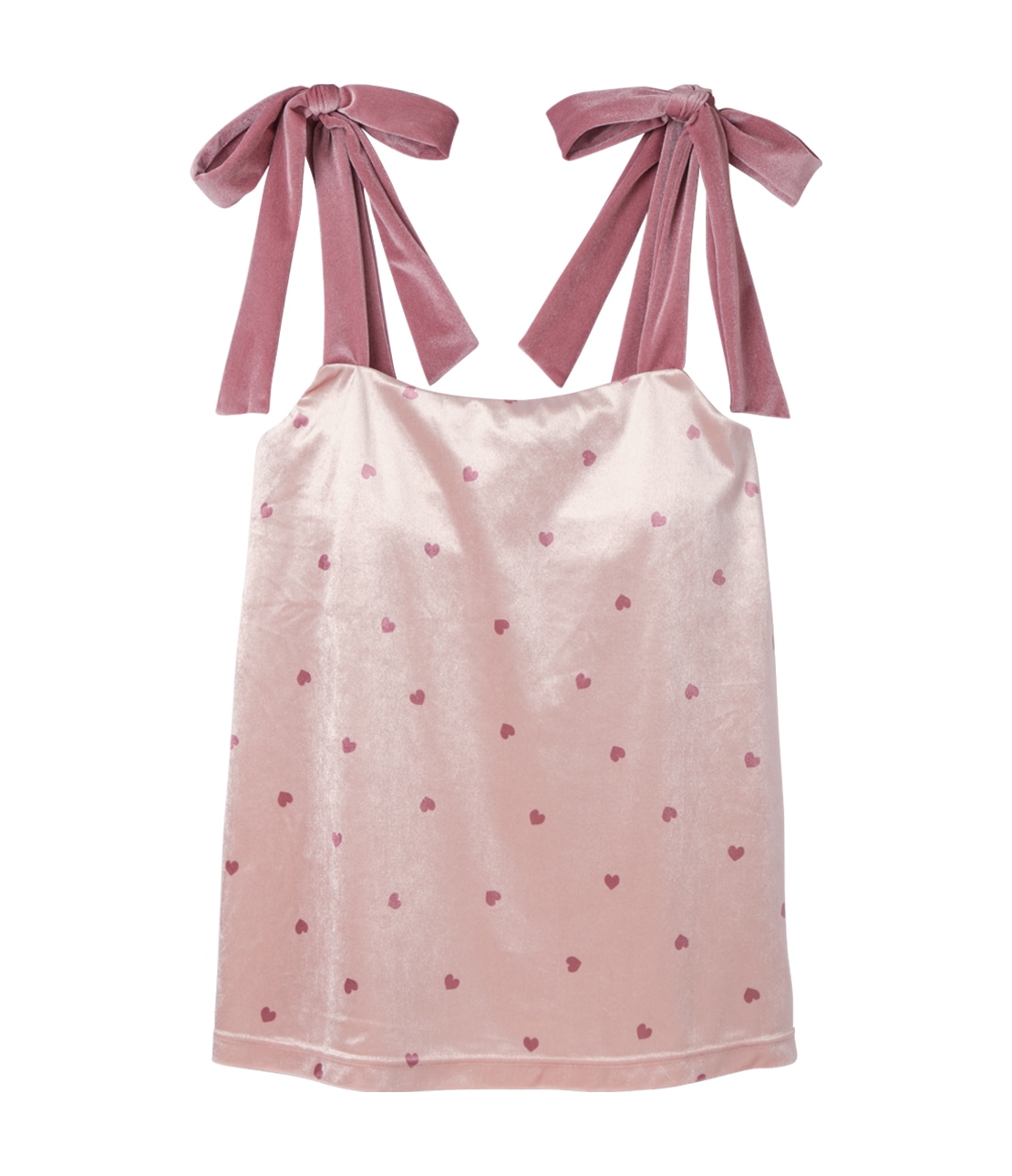 つやめくベロアにさりげないハートが、大人好みのスウィート。便利なパッド入り。