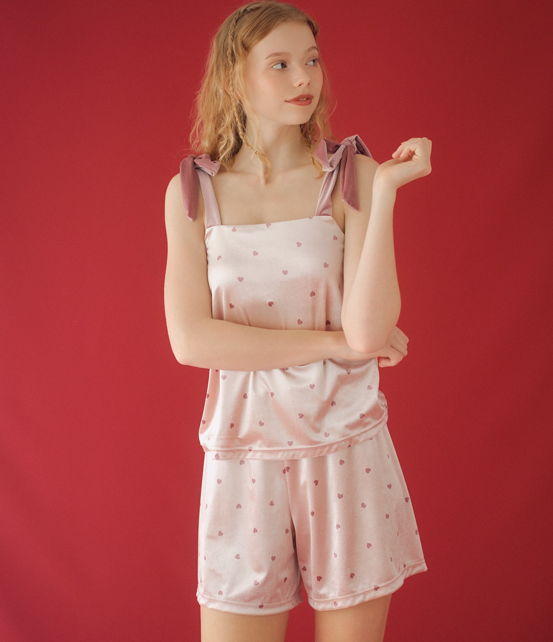・おそろいのブラキャミソールとセットアップで、キャッチーなお部屋スタイルが完成。