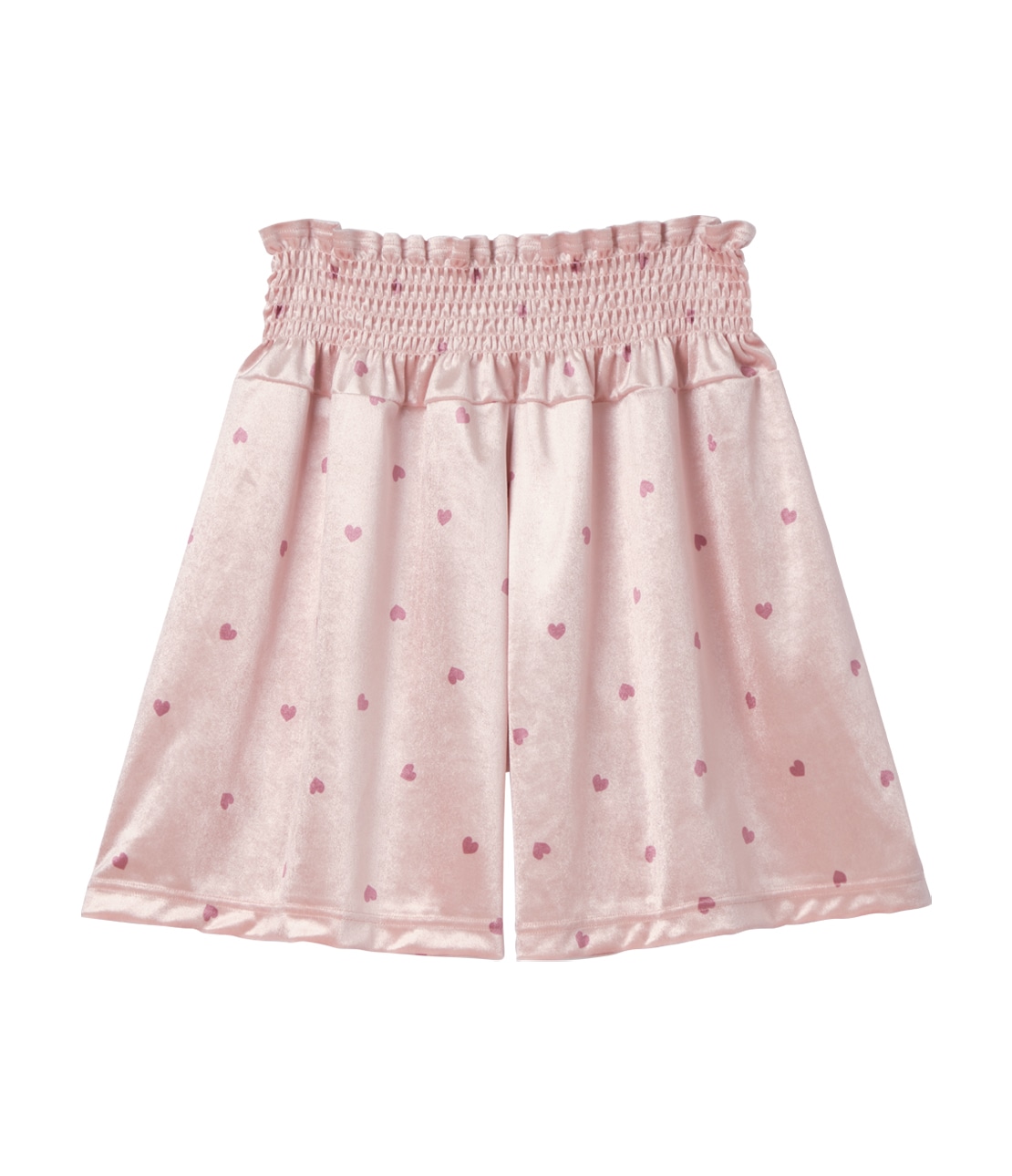 ・リッチなつやのベロアに小粒ハート柄をプリントした、大人可愛いタップパンツ。
