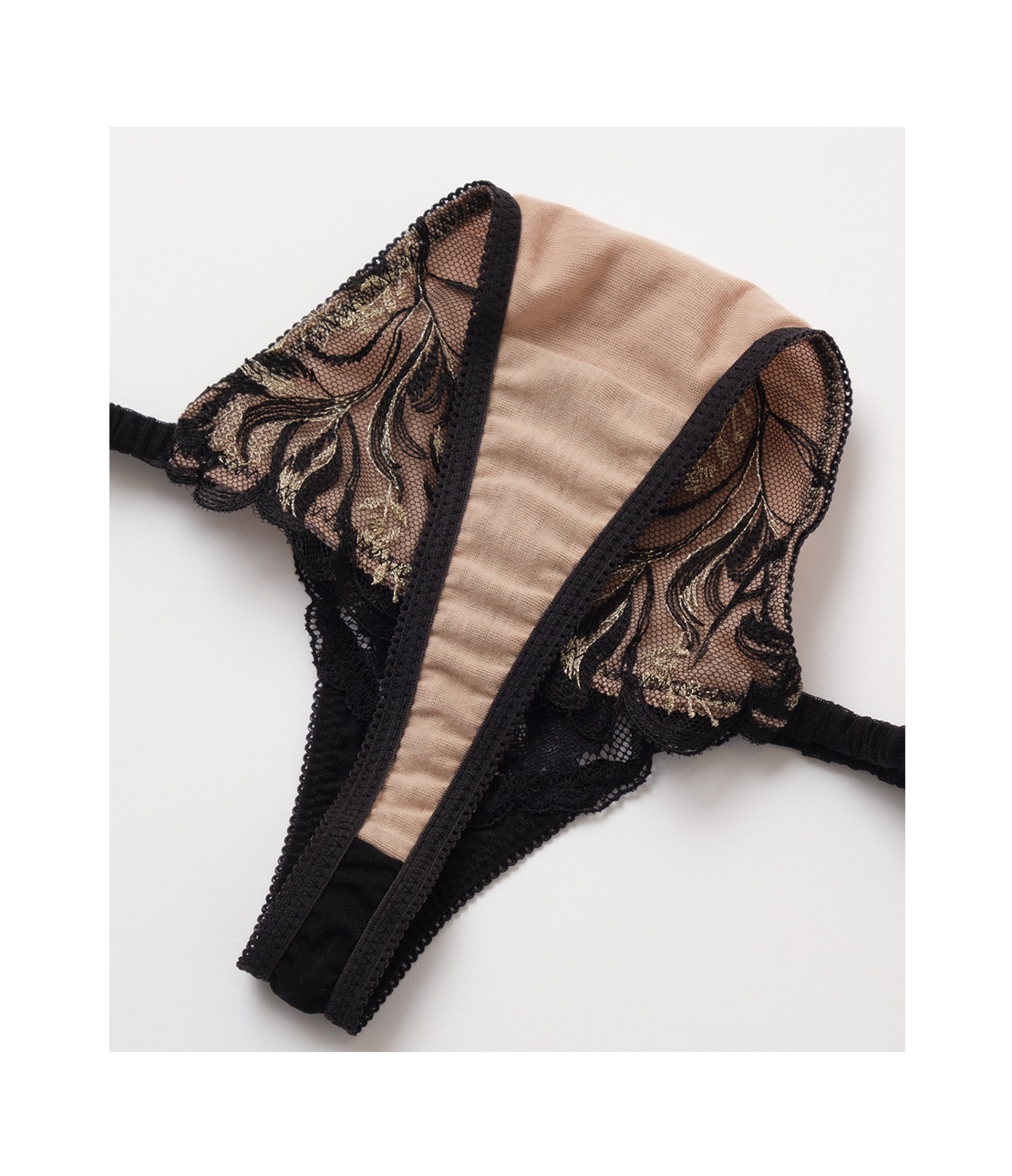 ・両サイドは、ギャザーを寄せたチュールでゴムテープを包んだ華奢なストリング。クラシカルで上品な印象。