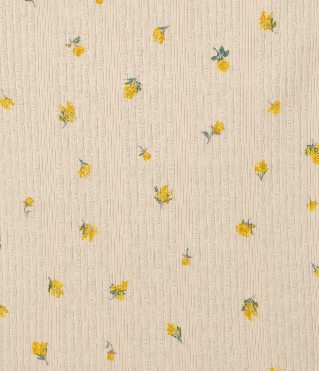 ライトイエロー地に、イエロー&グリーンでミモザとバラの小花をプリント