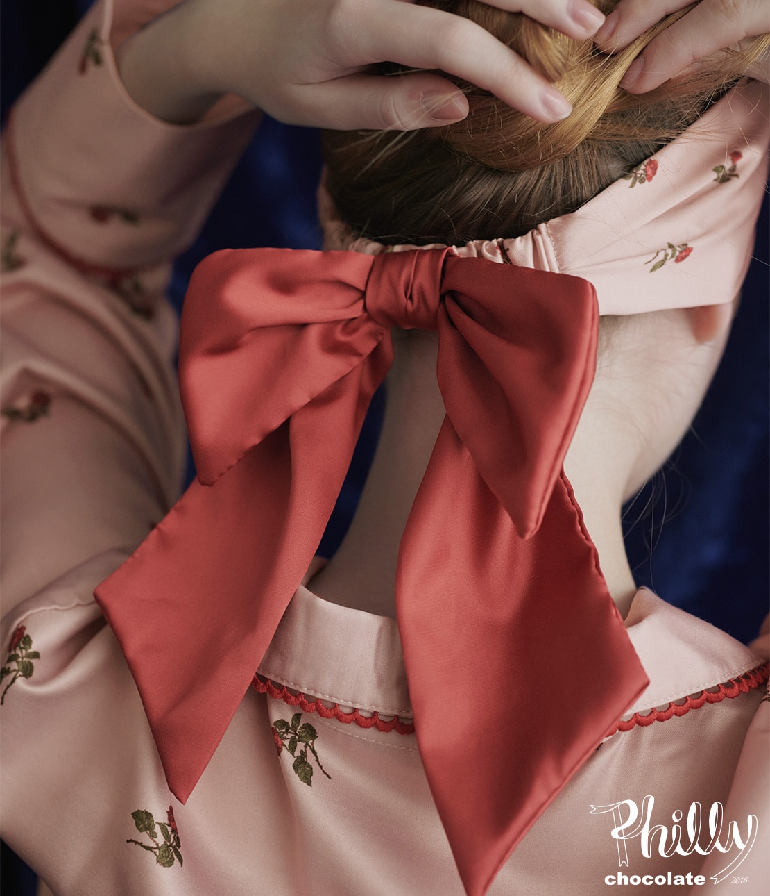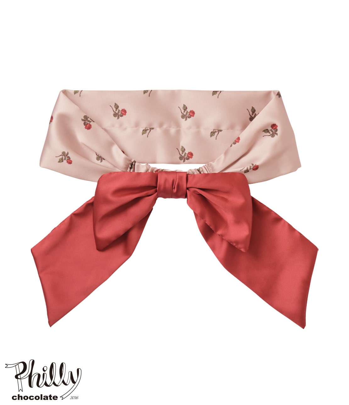 ・シリーズのルームウェアとおそろいの、ローズ柄サテン生地をバンド本体に使用