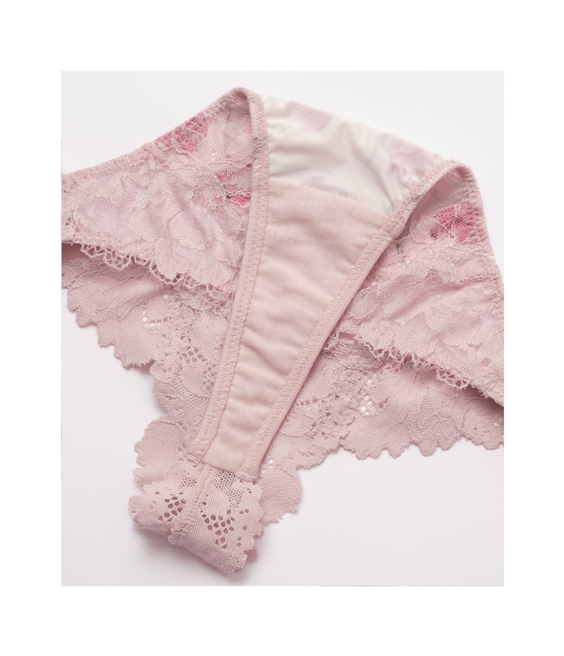 ・レース越しに花柄が透けて華やかで、肌ざわりもスムーズ。