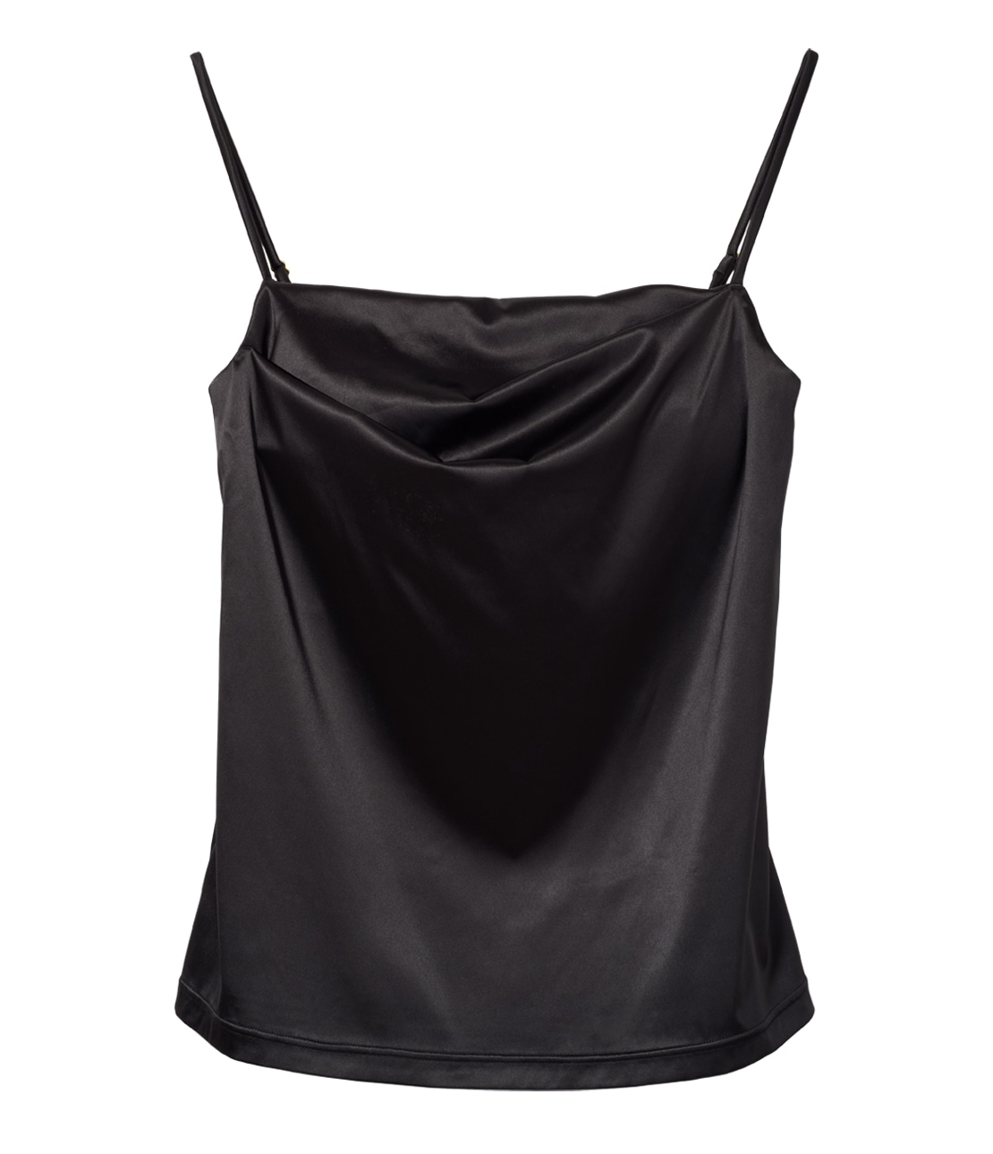 ・胸元の両サイドにタックを入れたドレープ風ディテールが、サテンの光沢感を引き立てるアクセント