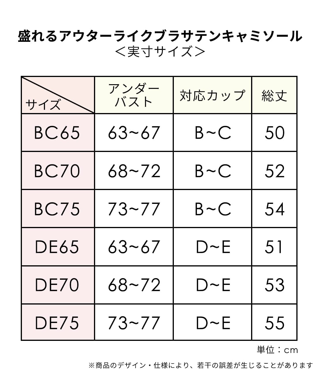 普段着用されているブラのサイズを目安にお選びください。