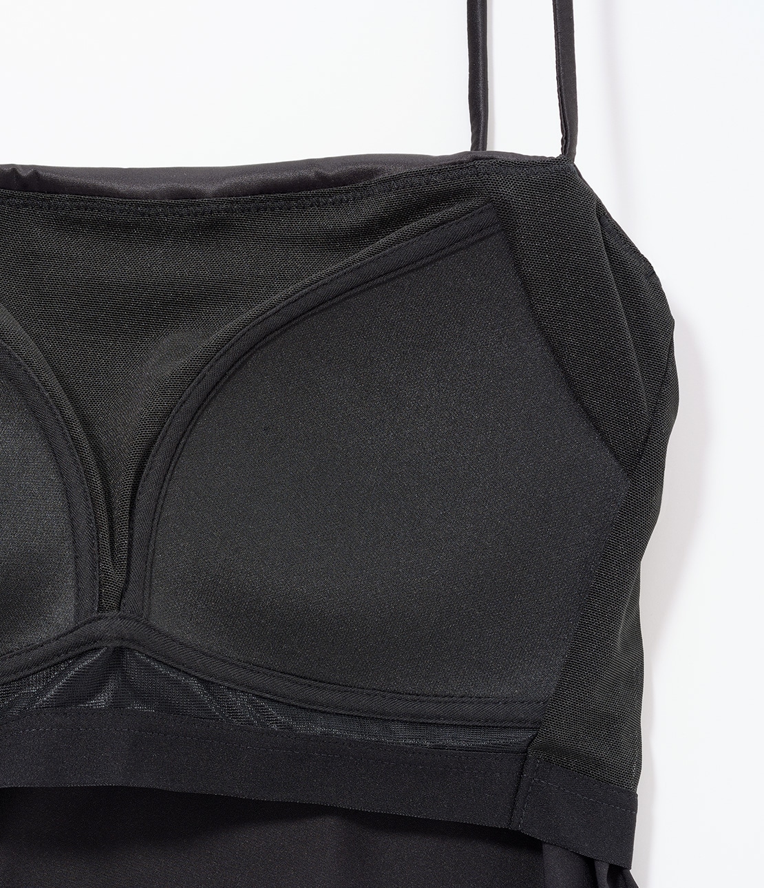 ・華奢なストラップはサテン仕立てで、見えても下着っぽくない印象